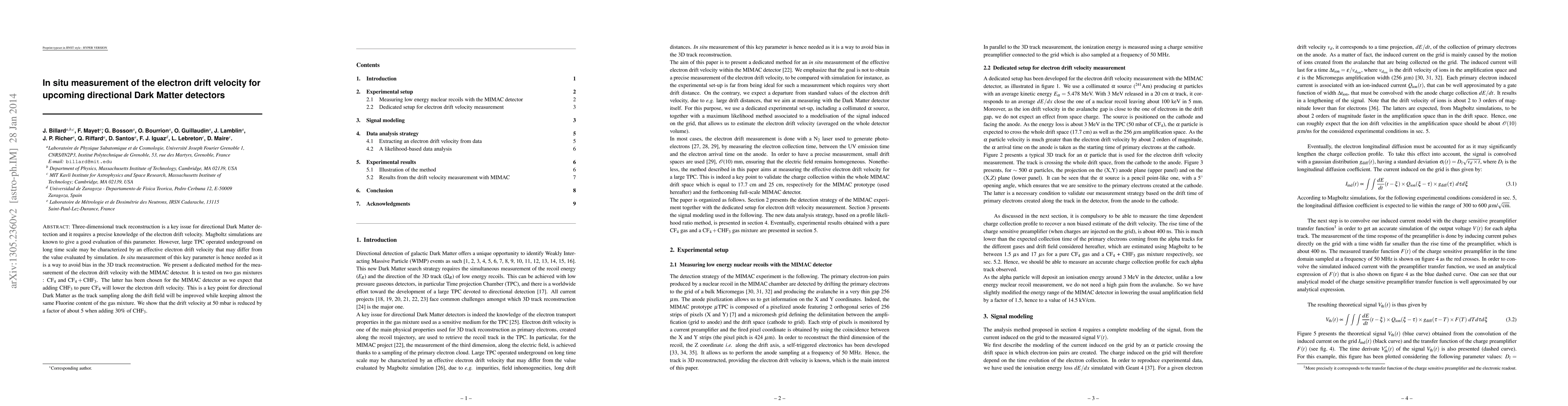 This paper presents a method for in situ measurement of electron drift velocity using the MIMAC detector to improve three-dimensional track reconstruction in directional Dark Matter detectors. The study shows that adding 30% of CHF3 to CF4 reduces the drift velocity by a factor of about 5, enhancing track sampling while maintaining Fluorine content.
