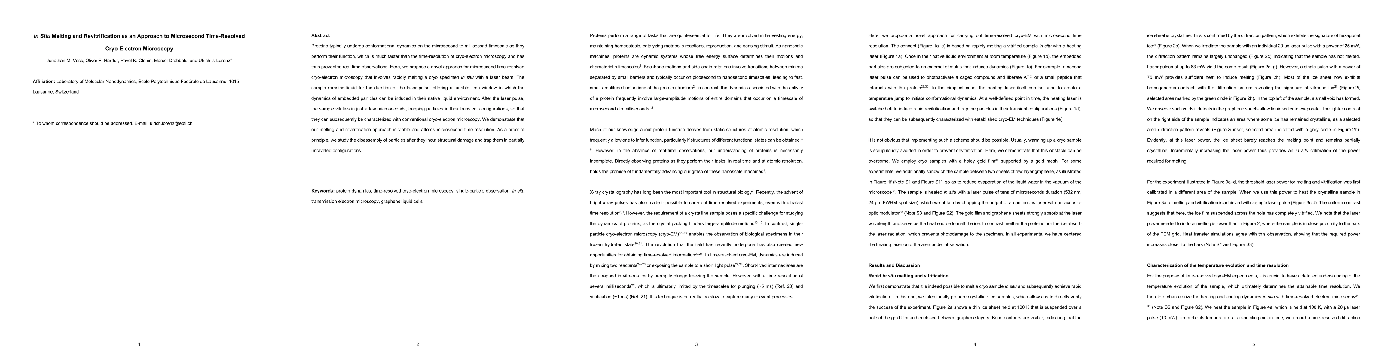 This paper proposes a novel method for microsecond time-resolved cryo-electron microscopy using in situ melting and revitrification, enabling observation of protein dynamics. The method rapidly melts and vitrifies samples to capture transient states, demonstrated by studying the disassembly of damaged particles.