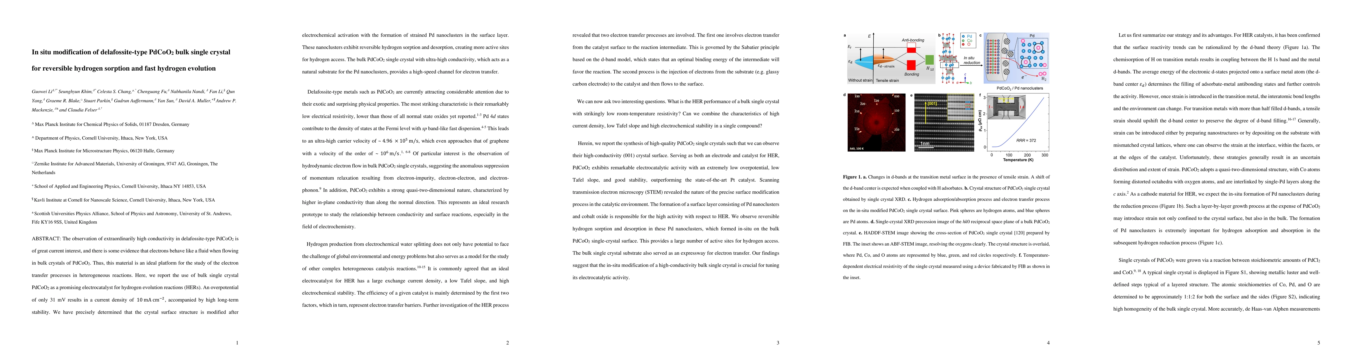 Researchers discovered that delafossite-type PdCoO2 bulk single crystals can be modified to act as efficient electrocatalysts for hydrogen evolution reactions, achieving high current densities with low overpotentials.