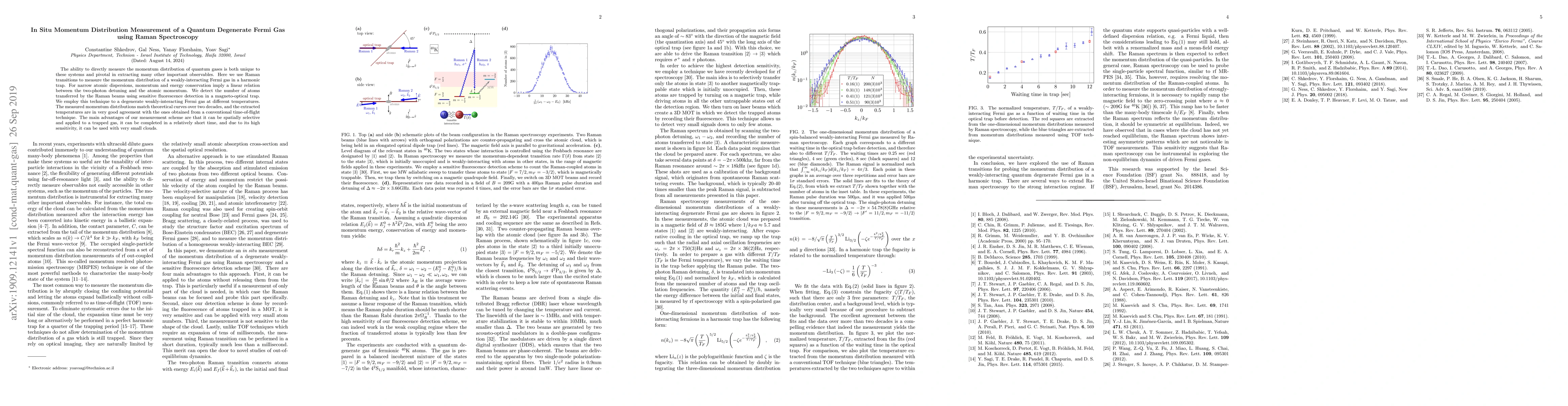 This research utilizes Raman spectroscopy to directly measure the momentum distribution of a quantum degenerate Fermi gas in a harmonic trap, achieving high sensitivity and agreement with theoretical predictions and conventional time-of-flight techniques. The method's selectivity and applicability to trapped gases make it advantageous for studying small gas clouds.