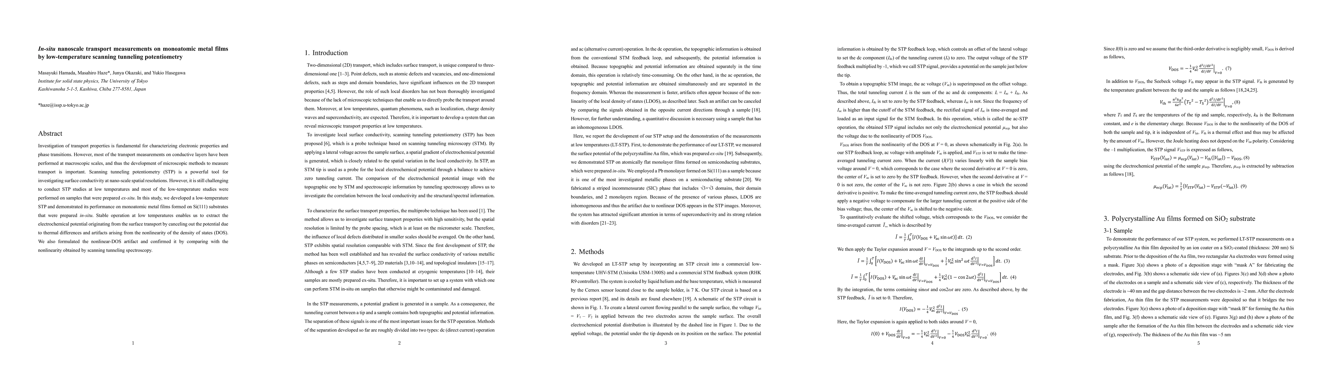 The research developed a low-temperature scanning tunneling potentiometry (STP) system to investigate transport properties of monoatomic metal films on Si(111) substrates prepared in-situ.