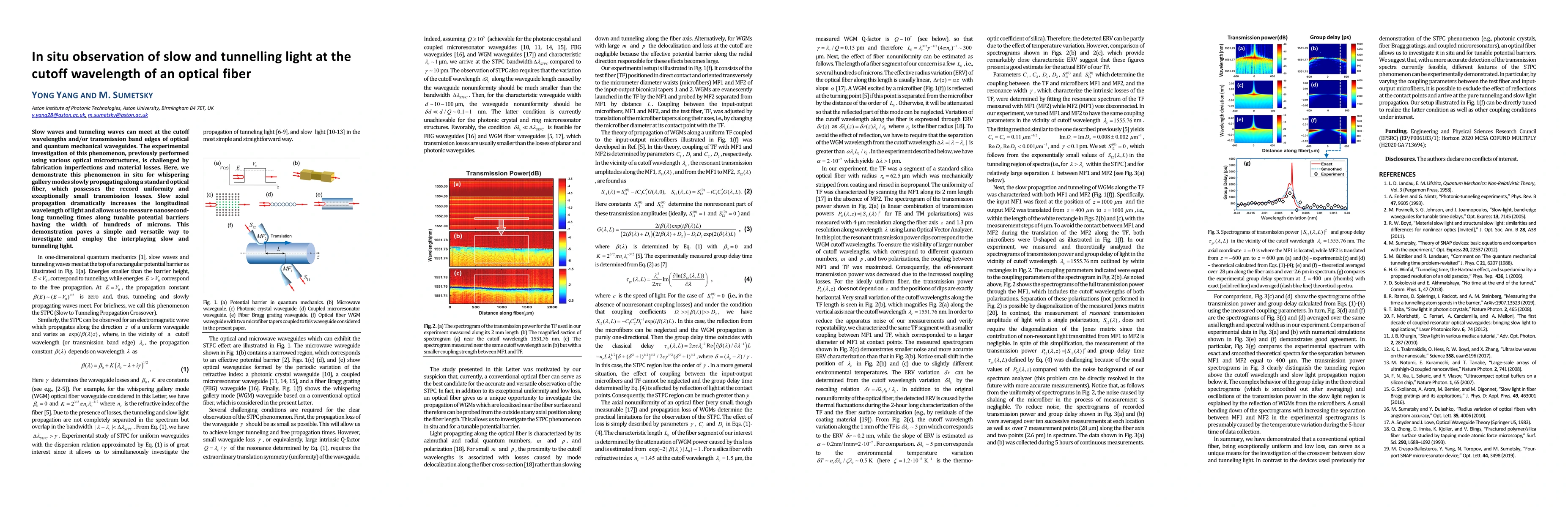 Slow waves and tunneling waves can meet at the cutoff wavelengths and/or transmission band edges of optical and quantum mechanical waveguides. The experimental investigation of this phenomenon, previously performed using various optical microstructures, is challenged by fabrication imperfections and material losses. Here, we demonstrate this phenomenon in situ for whispering gallery modes slowly propagating along a standard optical fiber, which possesses the record uniformity and exceptionally small transmission losses. Slow axial propagation dramatically increases the longitudinal wavelength of light and allows us to measure nanosecond-long tunneling times along tunable potential barriers having the width of hundreds of microns. This demonstration paves a simple and versatile way to investigate and employ the interplaying slow and tunneling light.