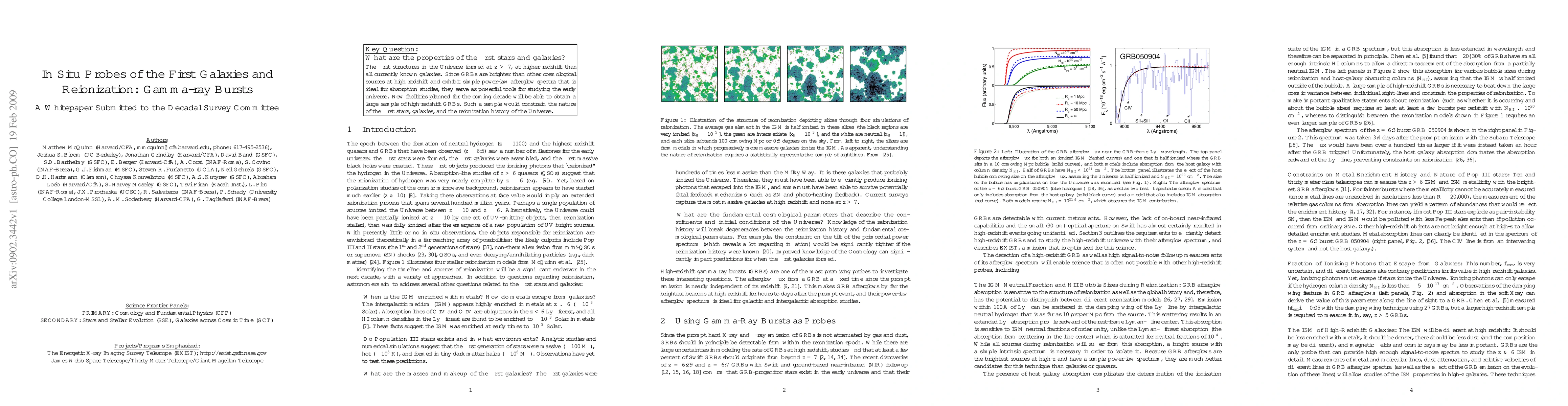 The first structures in the Universe formed at z>7, at higher redshift than all currently known galaxies. Since GRBs are brighter than other cosmological sources at high redshift and exhibit simple power-law afterglow spectra that is ideal for absorption studies, they serve as powerful tools for studying the early universe. New facilities planned for the coming decade will be able to obtain a large sample of high-redshift GRBs. Such a sample would constrain the nature of the first stars, galaxies, and the reionization history of the Universe.