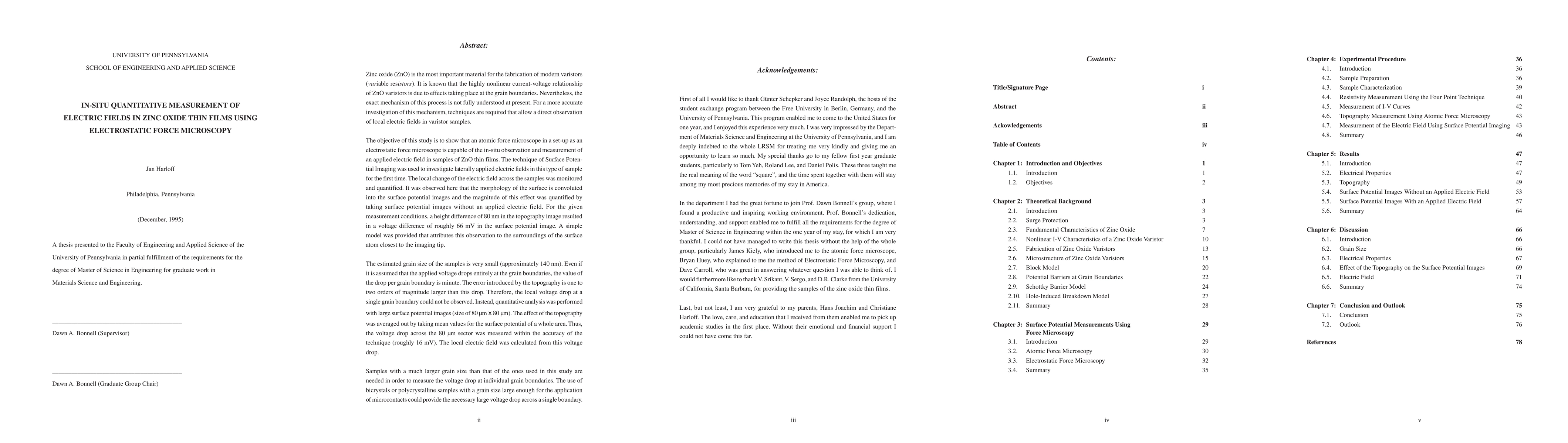 Researchers developed a technique to measure electric fields in zinc oxide thin films using electrostatic force microscopy, providing insights into the mechanism of varistor behavior.