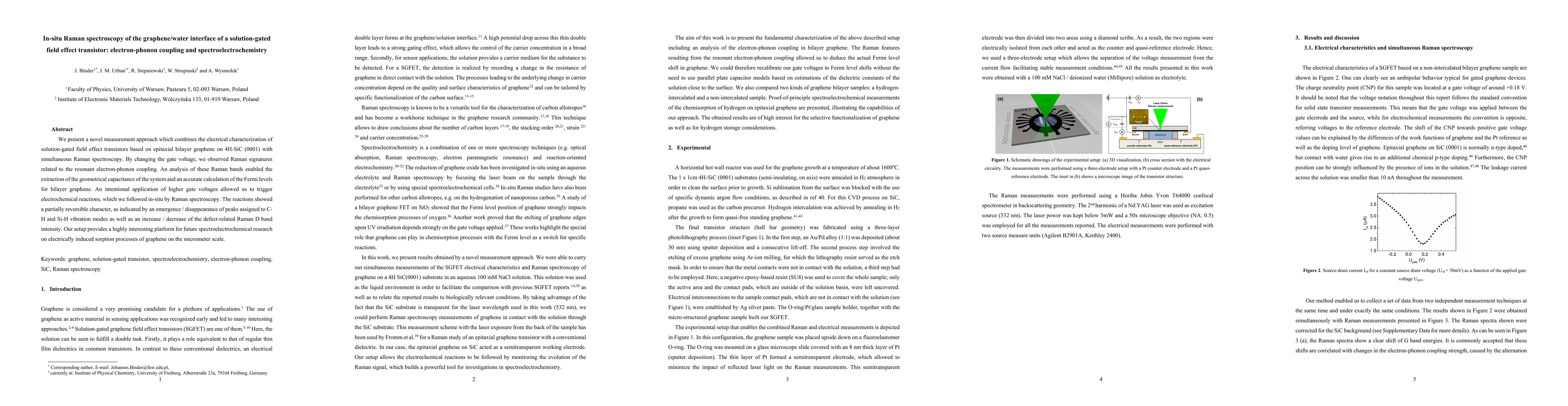 This research employs in-situ Raman spectroscopy to study electron-phonon coupling and spectroelectrochemistry at the graphene/water interface in a solution-gated field effect transistor. The study reveals Raman signatures related to electron-phonon interactions and electrochemical reactions, offering insights into graphene's Fermi levels and defect states.