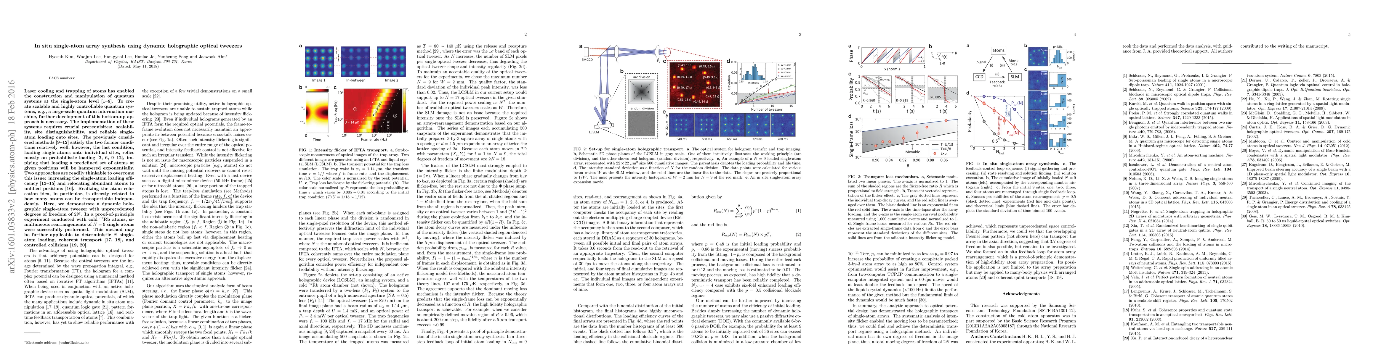 This paper presents a novel method using dynamic holographic optical tweezers to achieve in situ single-atom array synthesis, enabling the deterministic loading and manipulation of single atoms into predefined sites. The demonstrated technique successfully rearranges up to nine single rubidium atoms, paving the way for scalable quantum information systems.