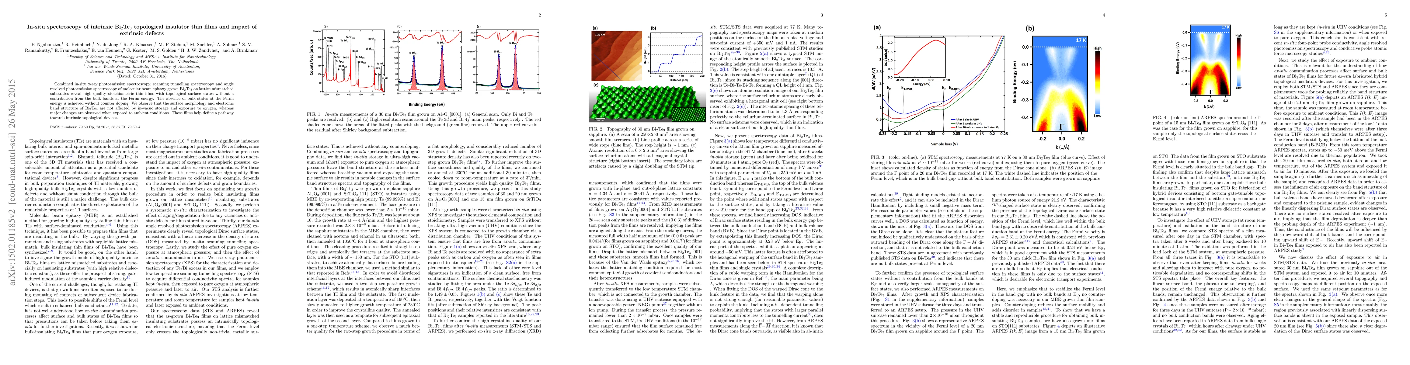This study uses in-situ spectroscopy techniques to analyze the intrinsic properties of high-quality Bi2Te3 topological insulator thin films, finding topological surface states without bulk contributions. The films remain stable under vacuum and oxygen exposure but undergo significant changes when exposed to ambient conditions, highlighting pathways for intrinsic topological devices.