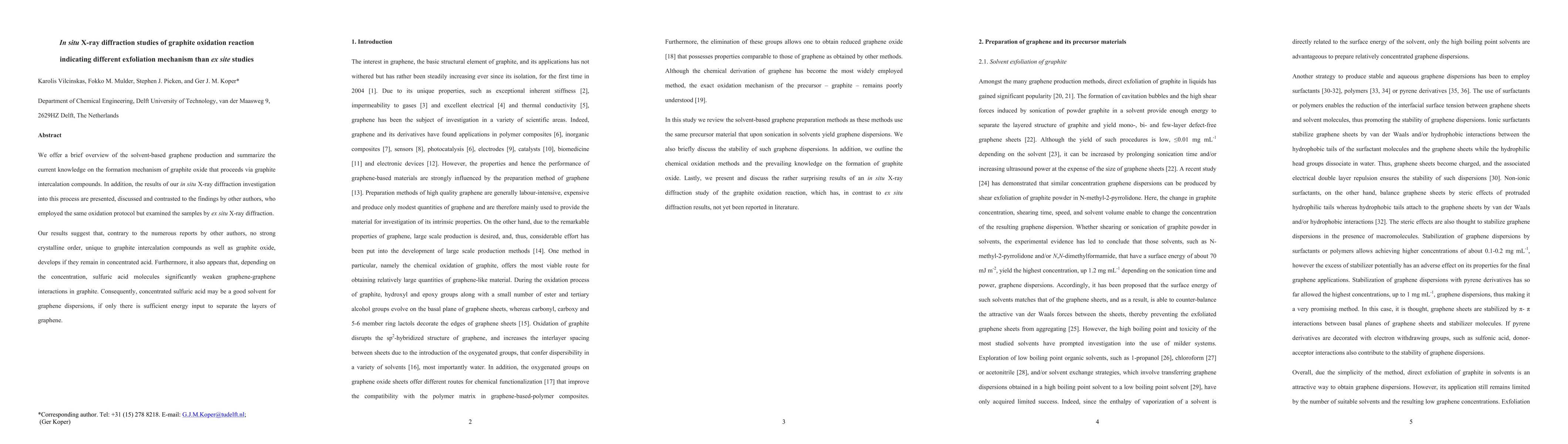 This paper presents in situ X-ray diffraction studies on graphite oxidation, revealing a different exfoliation mechanism compared to ex situ studies. Contrary to previous findings, it suggests that concentrated sulfuric acid weakens graphene-graphene interactions, potentially serving as a good solvent for graphene dispersions with adequate energy input.