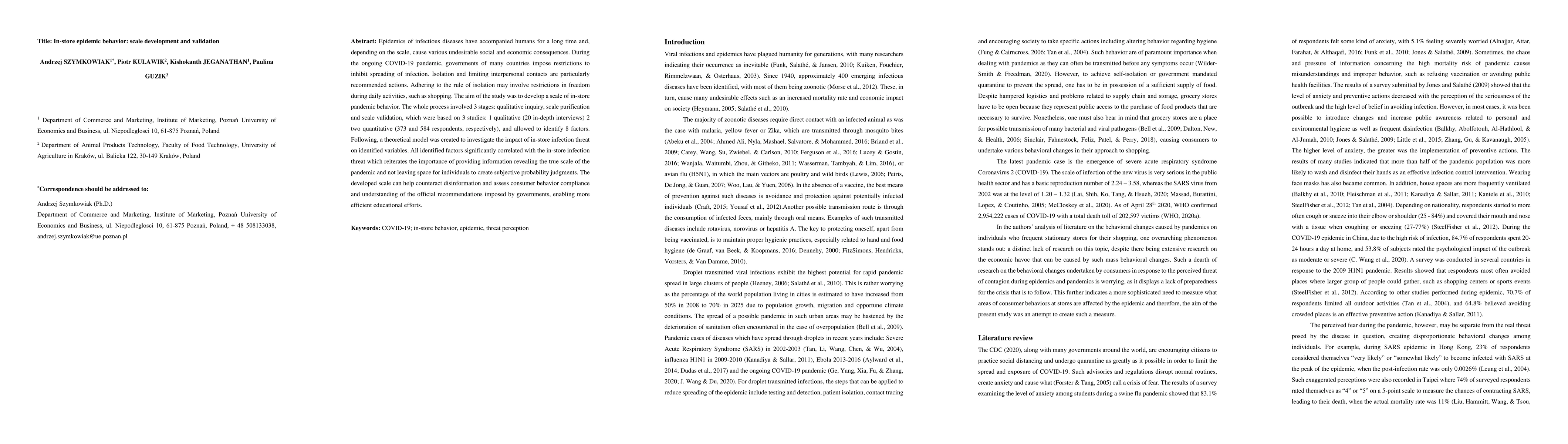 Researchers developed a scale to measure in-store epidemic behavior during the COVID-19 pandemic, finding 8 factors significantly correlated with the risk of infection, and creating a theoretical model to assess consumer compliance.