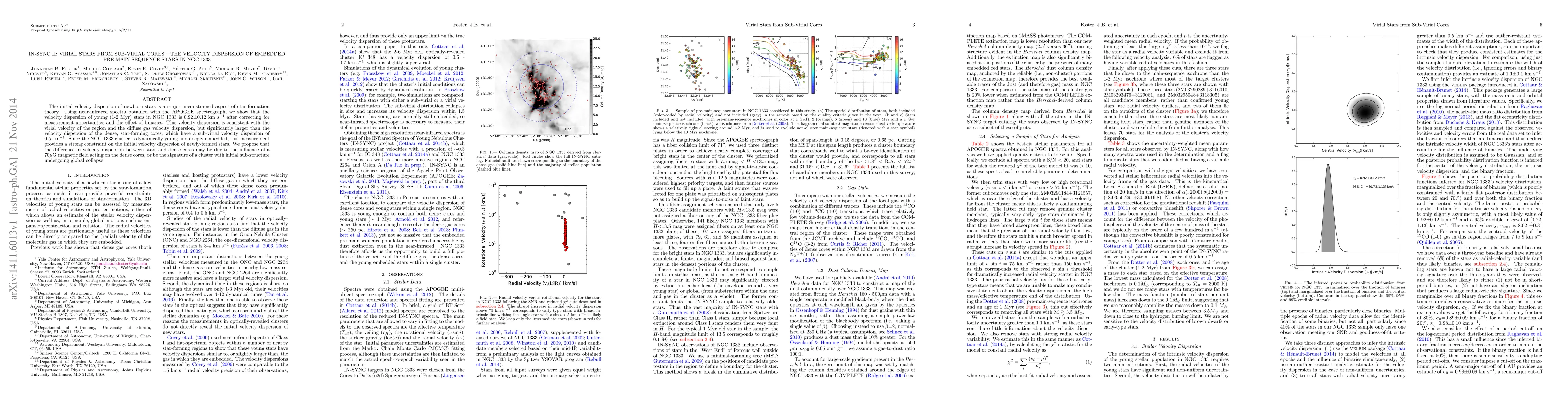 The initial velocity dispersion of newborn stars is a major unconstrained aspect of star formation theory. Using near-infrared spectra obtained with the APOGEE spectrograph, we show that the velocity dispersion of young (1-2 Myr) stars in NGC 1333 is 0.92+/-0.12 km/s after correcting for measurement uncertainties and the effect of binaries. This velocity dispersion is consistent with the virial velocity of the region and the diffuse gas velocity dispersion, but significantly larger than the velocity dispersion of the dense, star-forming cores, which have a sub-virial velocity dispersion of 0.5 km/s. Since the NGC 1333 cluster is dynamically young and deeply embedded, this measurement provides a strong constraint on the initial velocity dispersion of newly-formed stars. We propose that the difference in velocity dispersion between stars and dense cores may be due to the influence of a 70 micro-Gauss magnetic field acting on the dense cores, or be the signature of a cluster with initial sub-structure undergoing global collapse.