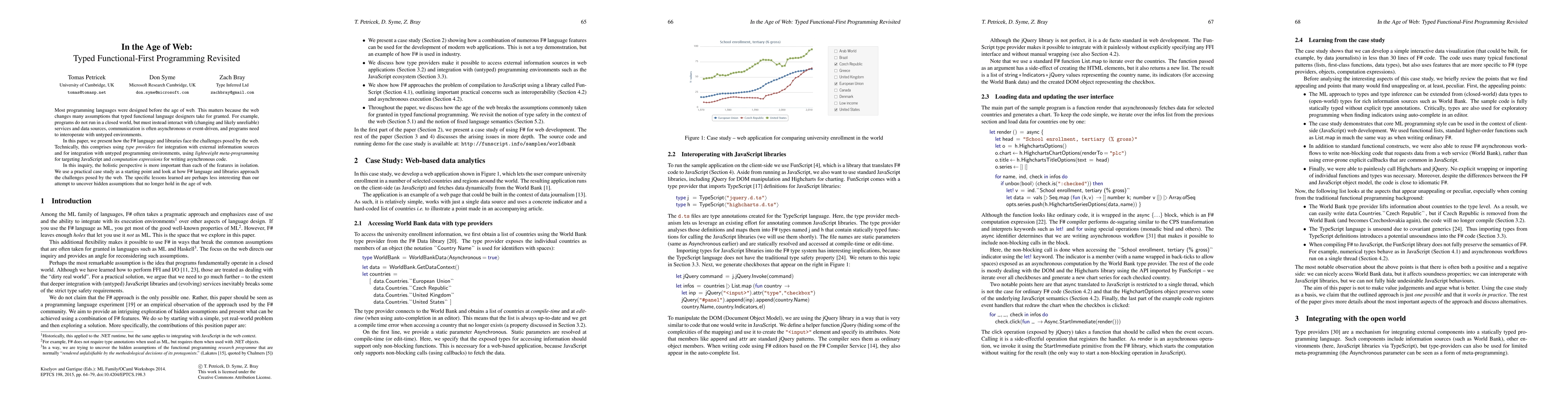 This paper explores how the F# language adapts to web-based programming challenges, emphasizing type providers, meta-programming for JavaScript, and computation expressions for asynchronous code. It highlights the importance of a holistic perspective over isolated features, using a practical case study to reveal outdated assumptions in typed functional programming.