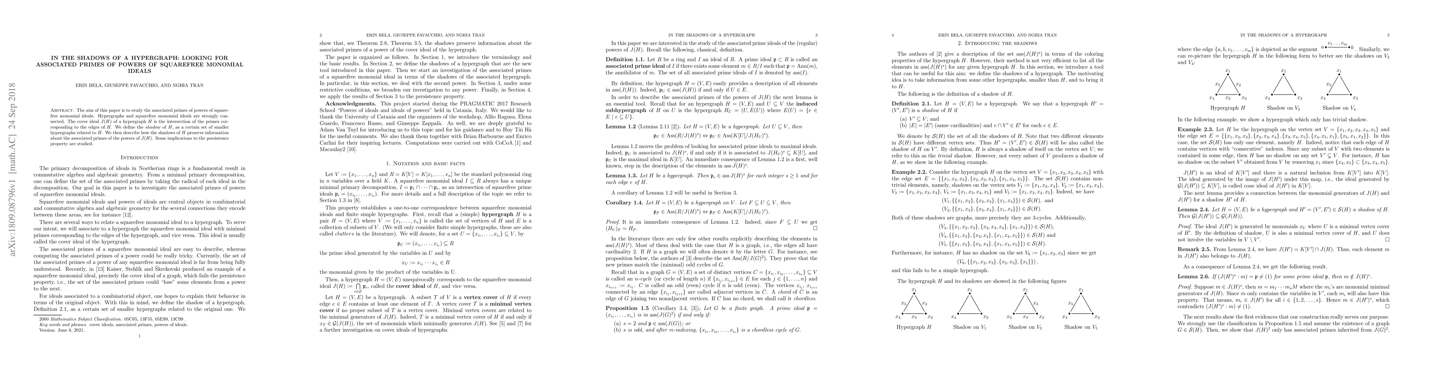 This paper investigates the associated primes of powers of squarefree monomial ideals, linking them to hypergraphs and their shadows. It demonstrates how the shadows of a hypergraph maintain information about the primes of the cover ideal's powers, and explores implications for the persistence property.