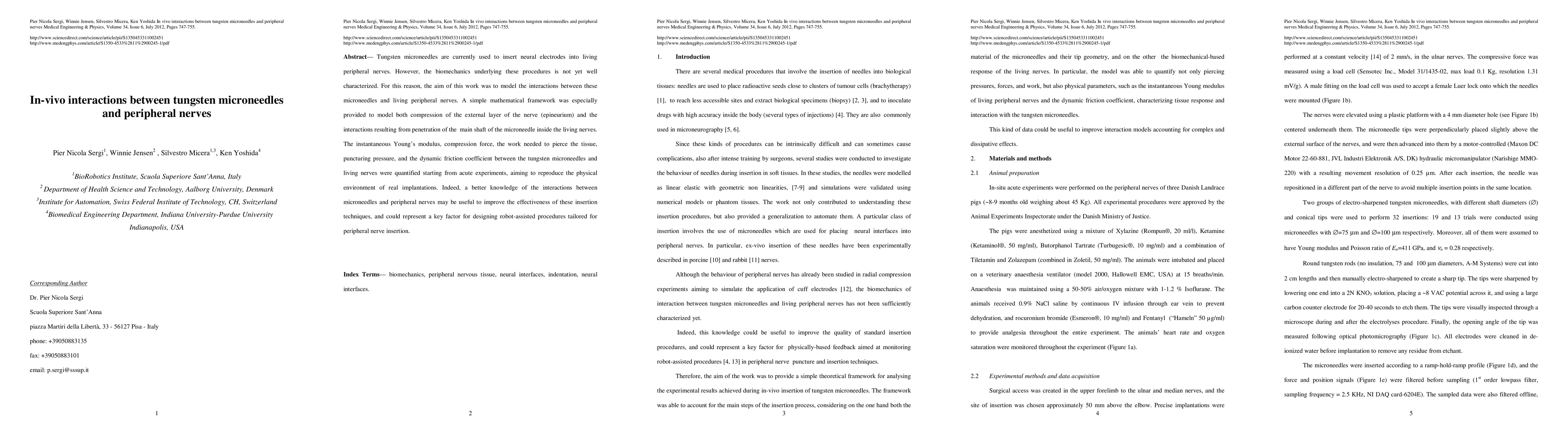 This study models the biomechanical interactions between tungsten microneedles and living peripheral nerves, quantifying factors like compression force and dynamic friction. The findings aim to enhance the effectiveness of neural electrode insertion techniques and inform the development of robot-assisted procedures.