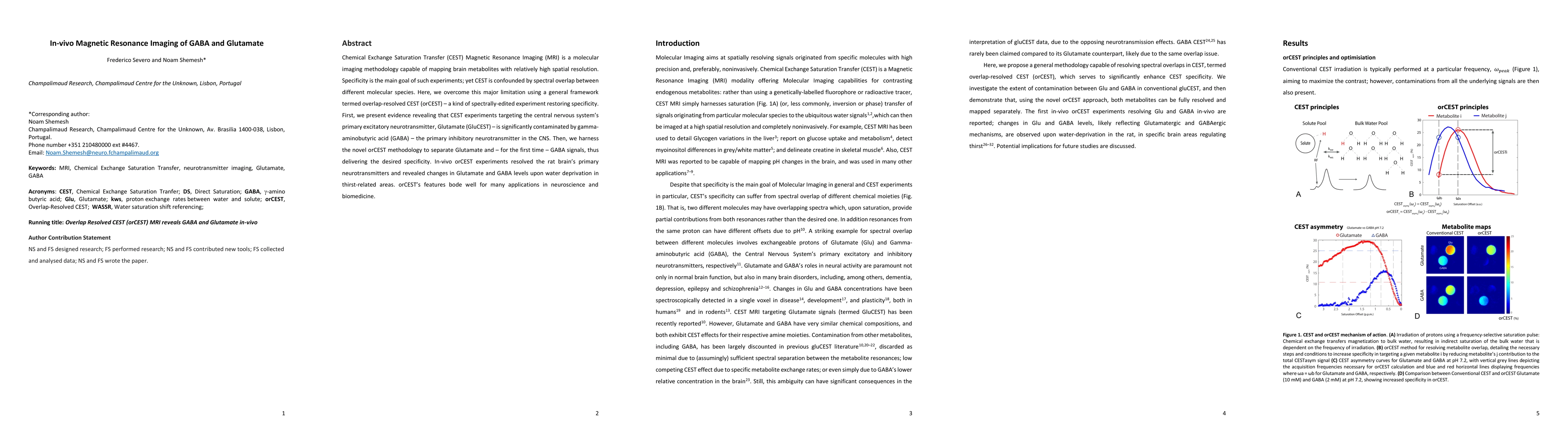 This research introduces overlap-resolved CEST (orCEST), a new method to separate signals of brain metabolites Glutamate and GABA using MRI. orCEST successfully distinguished these neurotransmitters in rat brains, revealing changes in their levels due to water deprivation, opening new possibilities in neuroscience and biomedicine.
