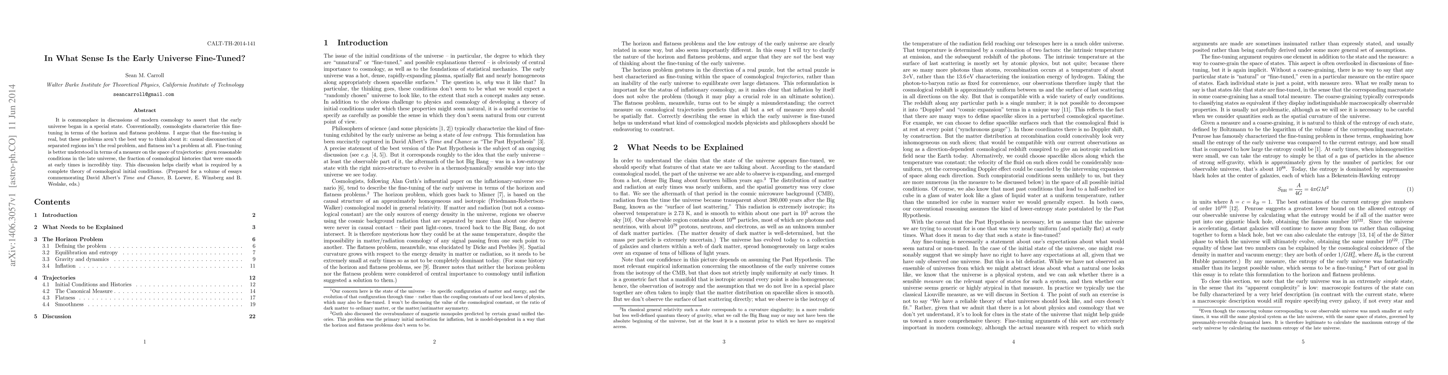 This paper argues that the early universe's fine-tuning is better understood through a measure on the space of cosmological histories rather than the traditional horizon and flatness problems, emphasizing that only a minuscule fraction of possible trajectories meet the conditions for a smooth early universe. It calls for a more comprehensive theory of initial conditions.