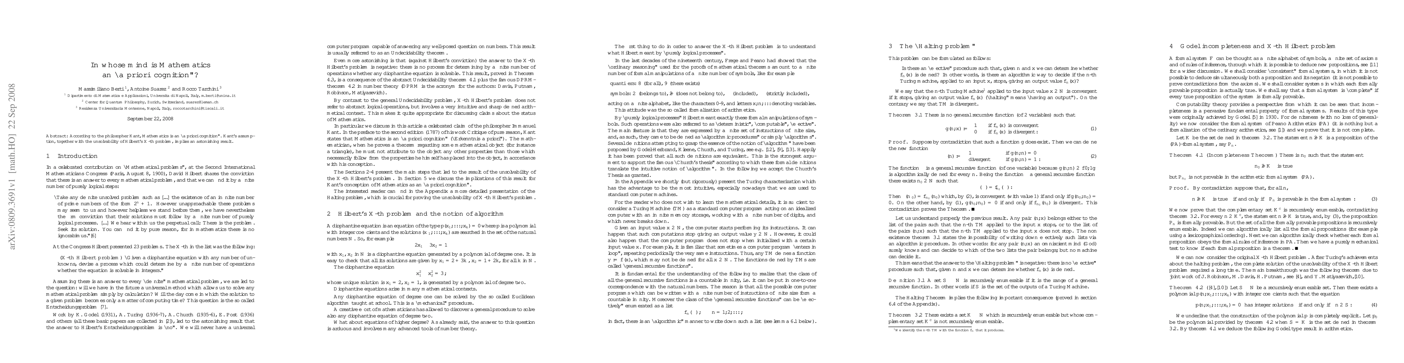 A research paper explores the philosophical idea of Mathematics as an "a priori cognition" proposed by Immanuel Kant, investigating its implications on Hilbert's 10th problem and its surprising consequences.
