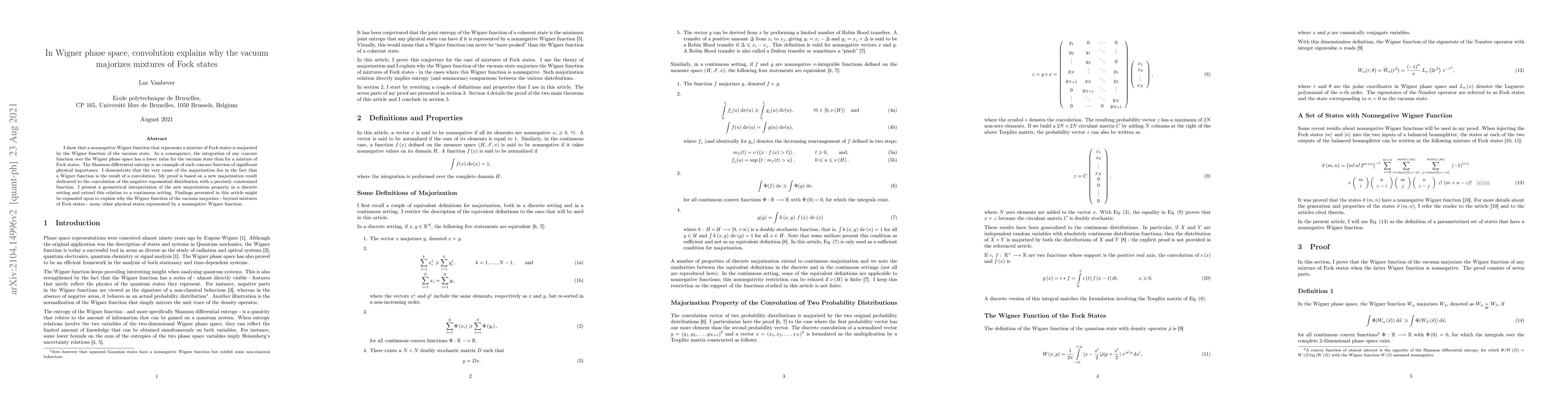 This paper demonstrates that the vacuum state's Wigner function majorizes mixtures of Fock states due to the convolution property of the Wigner function. This majorization implies that integrating concave functions, such as the Shannon differential entropy, yields lower values for the vacuum state compared to mixtures of Fock states.