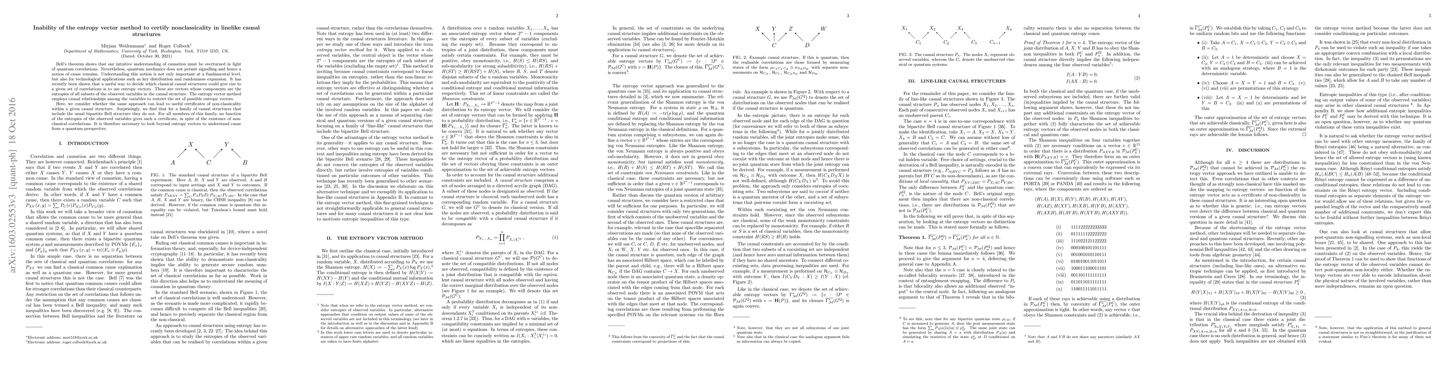 Bell's theorem shows that our intuitive understanding of causation must be overturned in light of quantum correlations. Nevertheless, quantum mechanics does not permit signalling and hence a notion of cause remains. Understanding this notion is not only important at a fundamental level, but also for technological applications such as key distribution and randomness expansion. It has recently been shown that a useful way to decide which classical causal structures could give rise to a given set of correlations is to use entropy vectors. These are vectors whose components are the entropies of all subsets of the observed variables in the causal structure. The entropy vector method employs causal relationships among the variables to restrict the set of possible entropy vectors. Here, we consider whether the same approach can lead to useful certificates of non-classicality within a given causal structure. Surprisingly, we find that for a family of causal structures that include the usual bipartite Bell structure they do not. For all members of this family, no function of the entropies of the observed variables gives such a certificate, in spite of the existence of nonclassical correlations. It is therefore necessary to look beyond entropy vectors to understand cause from a quantum perspective.
