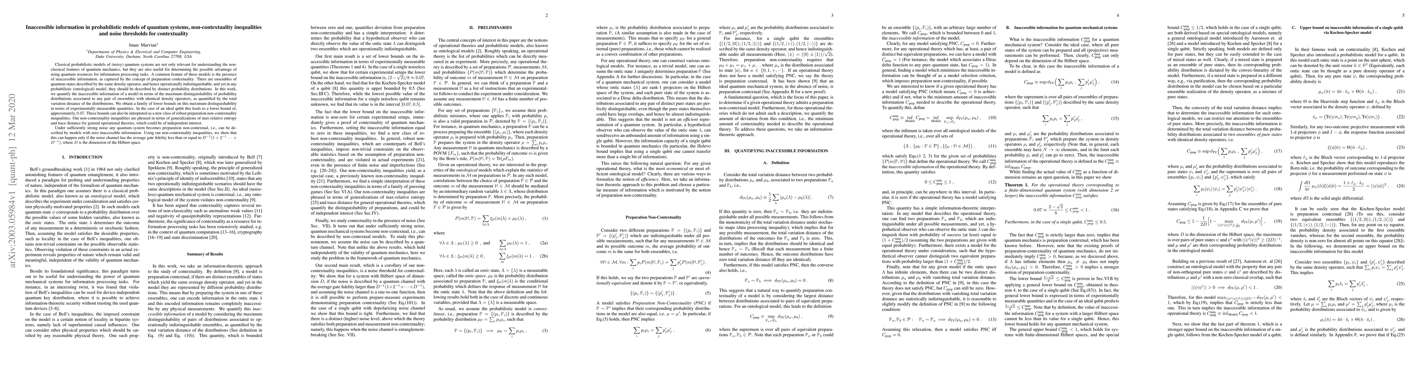 This paper explores inaccessible information in classical probabilistic models of quantum systems, focusing on preparation contextuality and its implications for quantum information processing. It establishes lower bounds on the maximum distinguishability of probability distributions for quantum states with identical density operators, leading to new robust preparation non-contextuality inequalities. The study also determines the noise threshold at which quantum systems become preparation non-contextual, revealing a critical gate fidelity condition.