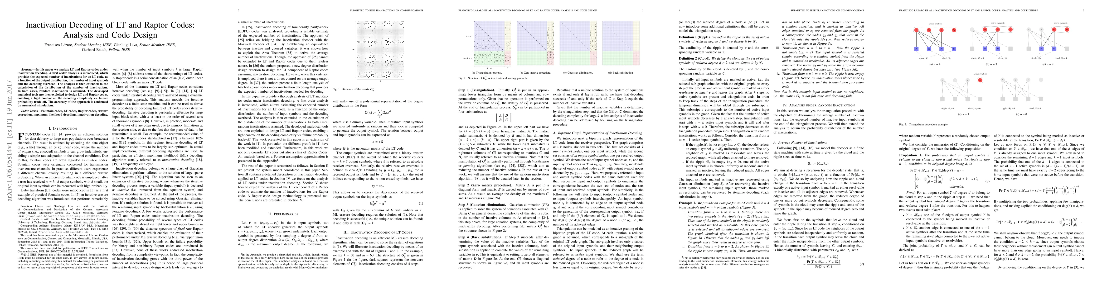 This paper analyzes LT and Raptor codes under inactivation decoding, introducing a first-order analysis to determine the expected number of inactivations and their distribution. The developed analytical tools are used to design codes that optimize the trade-off between decoding complexity and failure probability, validated by numerical simulations.