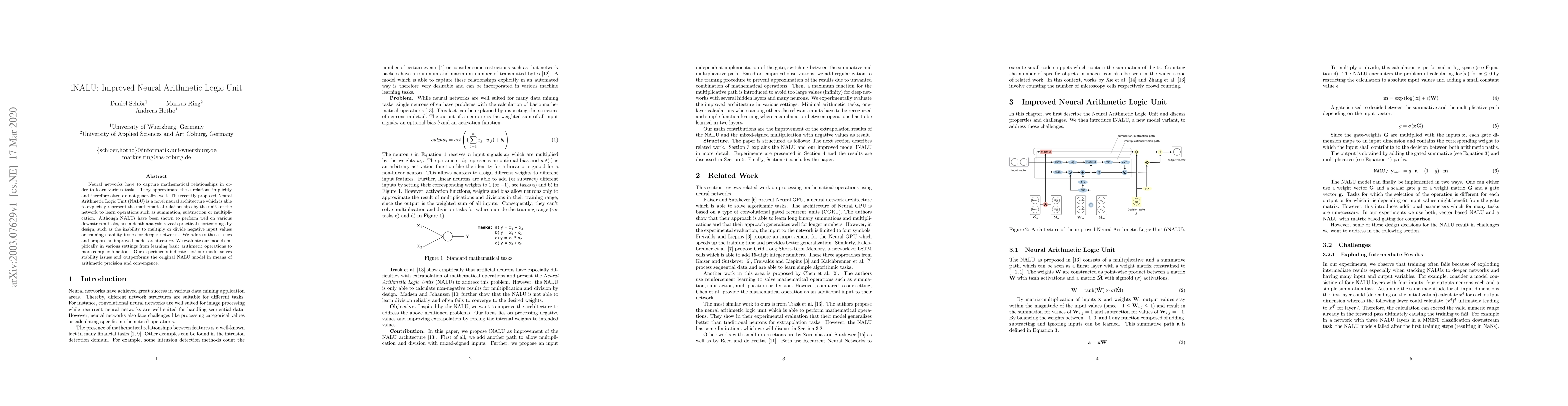 The paper proposes an improved Neural Arithmetic Logic Unit (iNALU) to address stability and precision issues in the original NALU model, achieving better performance in arithmetic operations and complex functions. Empirical evaluations show enhanced convergence and accuracy over the initial NALU design.