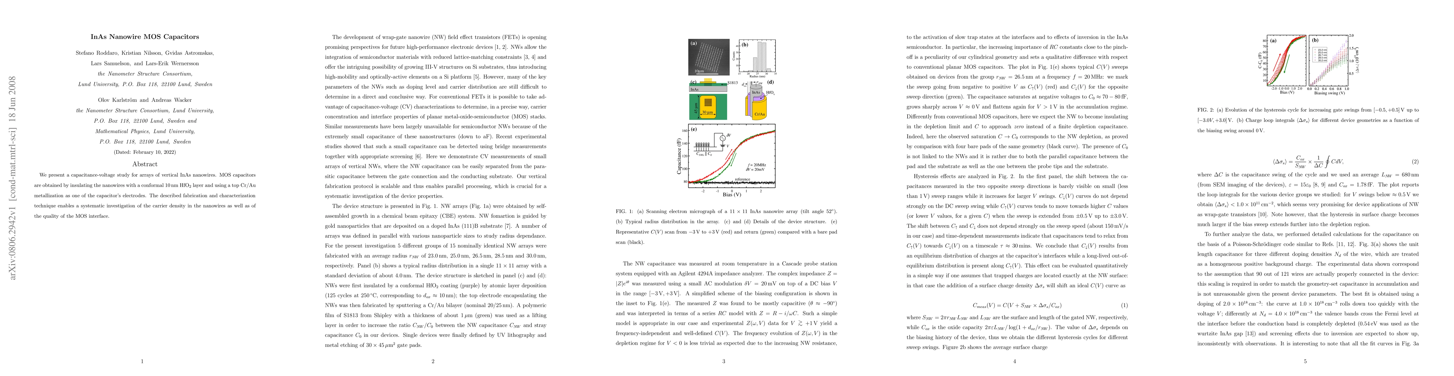 We present a capacitance-voltage study for arrays of vertical InAs nanowires. MOS capacitors are obtained by insulating the nanowires with a conformal 10nm HfO2 layer and using a top Cr/Au metallization as one of the capacitor's electrodes. The described fabrication and characterization technique enables a systematic investigation of the carrier density in the nanowires as well as of the quality of the MOS interface.