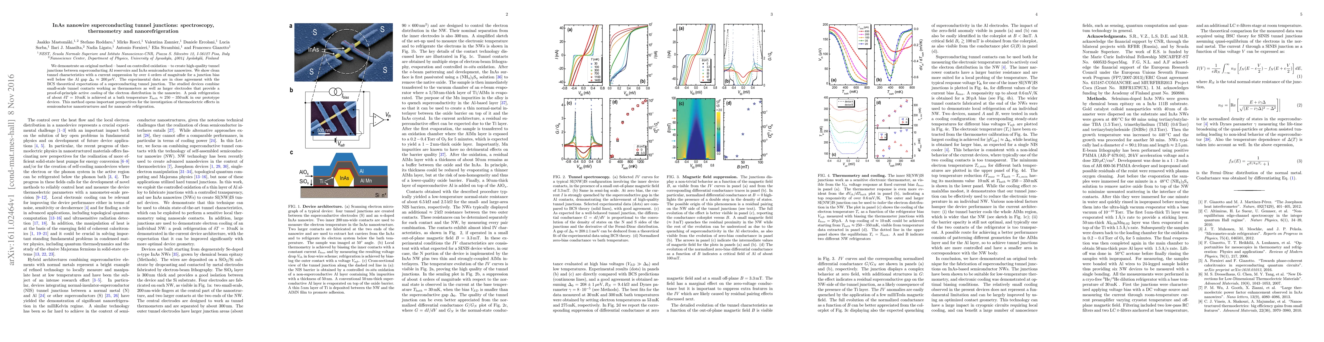 This paper presents a novel method for creating high-quality superconducting tunnel junctions between Al and InAs nanowires using controlled oxidation, demonstrating significant current suppression and agreement with BCS theory. The devices also enable nanoscale refrigeration, achieving a peak cooling of 10 mK at bath temperatures of 250-350 mK.