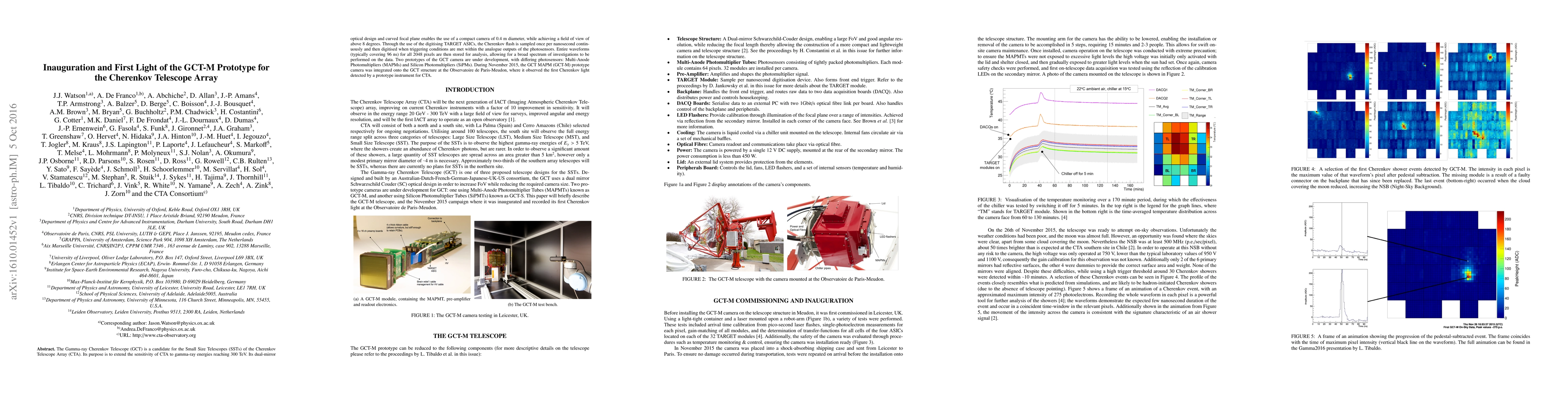 The GCT-M prototype camera, part of the Gamma-ray Cherenkov Telescope (GCT) for the Cherenkov Telescope Array (CTA), successfully detected its first Cherenkov light in November 2015. This prototype uses Multi-Anode Photomultipliers (MAPMs) and aims to extend CTA's sensitivity to gamma-ray energies up to 300 TeV.