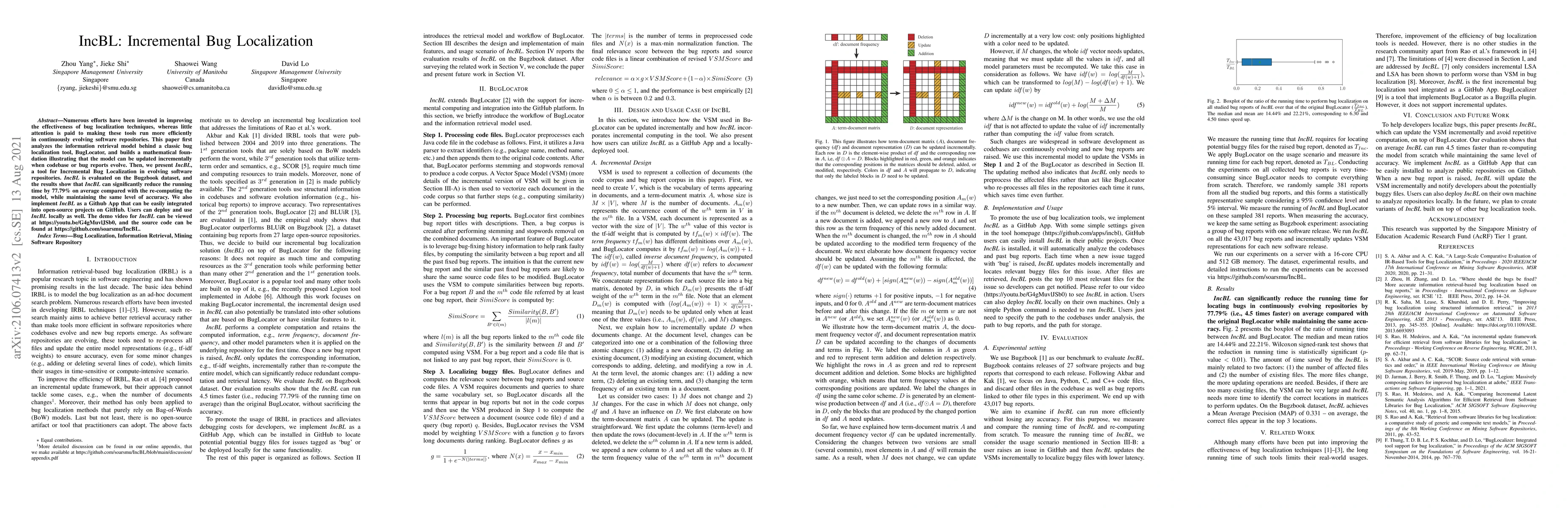 A new tool called IncBL reduces bug localization time by 77.79% while maintaining accuracy in evolving software repositories.