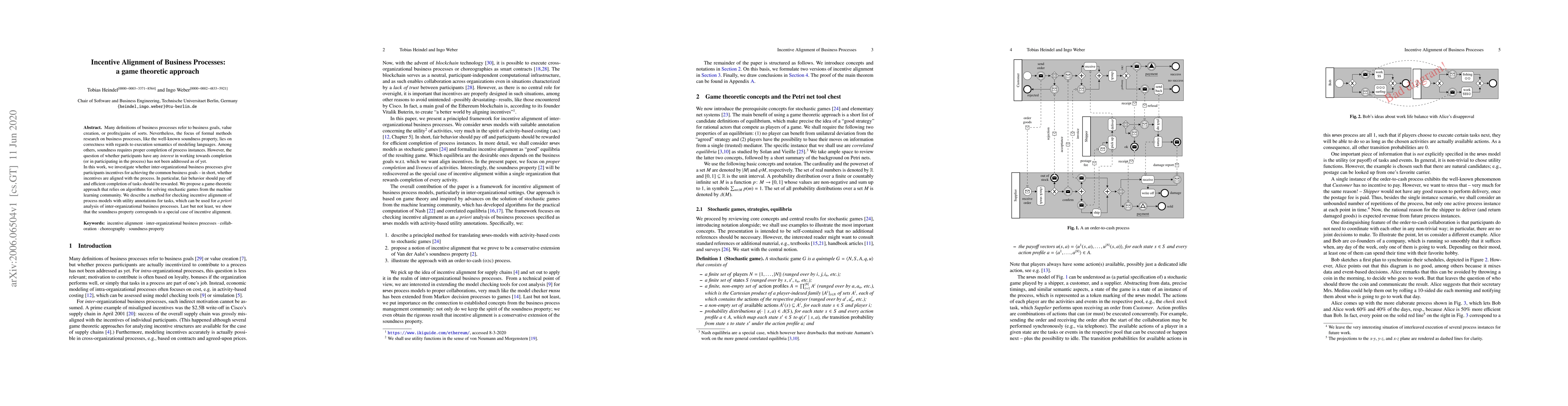 This paper explores incentive alignment in inter-organizational business processes using a game-theoretic approach. It proposes algorithms to check whether participants are incentivized to achieve common goals, ensuring fair behavior and efficient task completion.