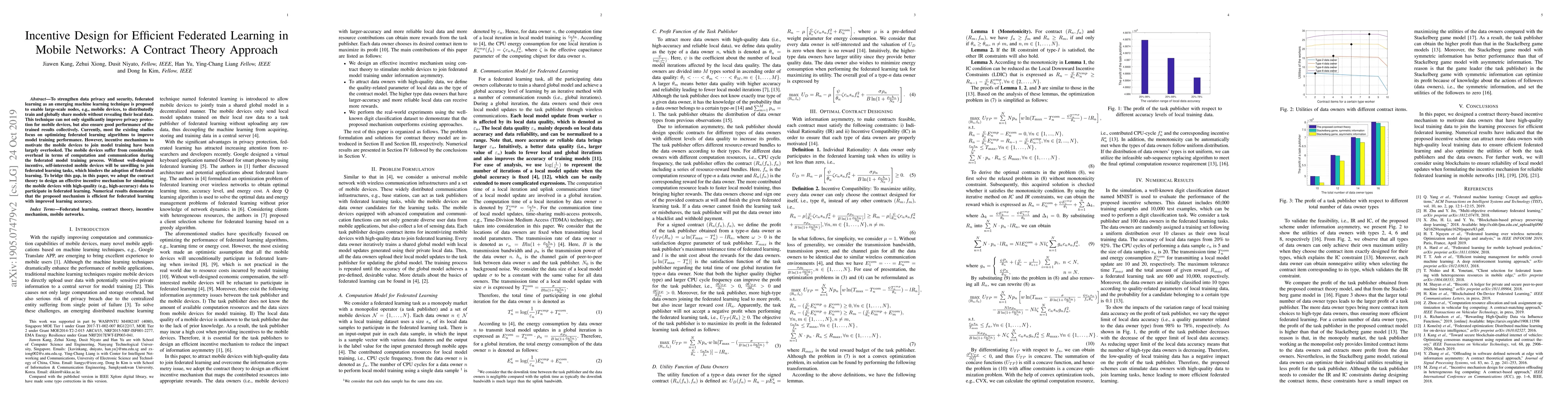 This paper proposes an incentive mechanism using contract theory to motivate mobile devices to participate in federated learning, addressing the lack of such mechanisms in existing studies. The designed incentive effectively encourages devices with high-quality data to join, thereby improving the overall learning accuracy of federated models.