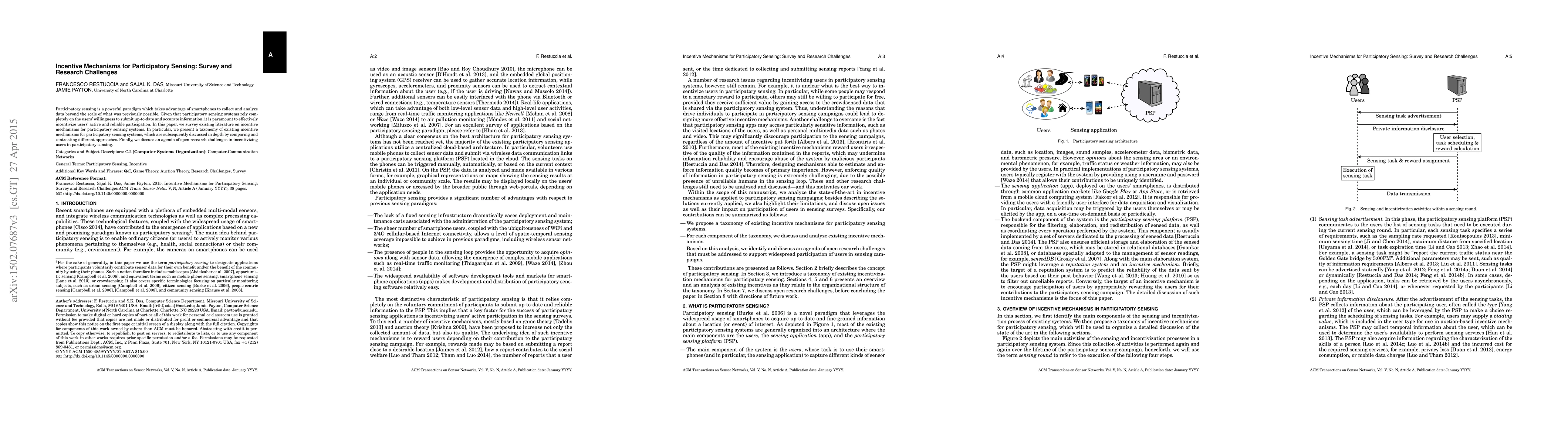 This paper surveys existing incentive mechanisms for participatory sensing systems, categorizing and comparing various approaches to motivate users to provide accurate and timely data. It also outlines significant open research challenges in incentivizing user participation in these systems.