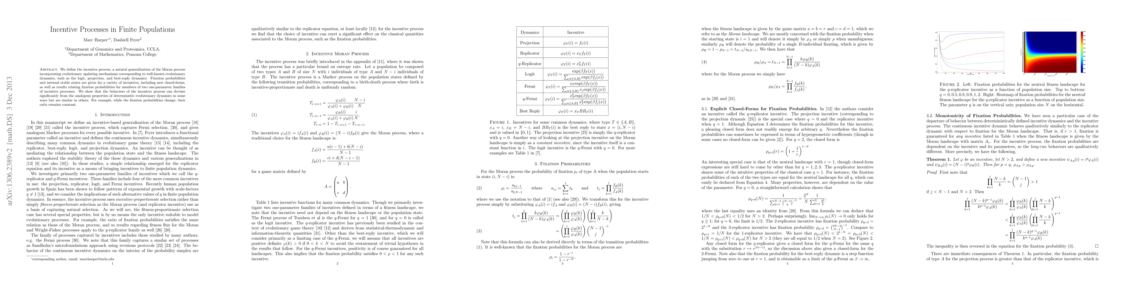 This paper introduces a new generalization of the Moran process called the incentive process, which incorporates evolutionary updating mechanisms for well-known dynamics. It finds that fixation probabilities and internal stable states vary significantly from deterministic evolutionary dynamics but share some similarities.