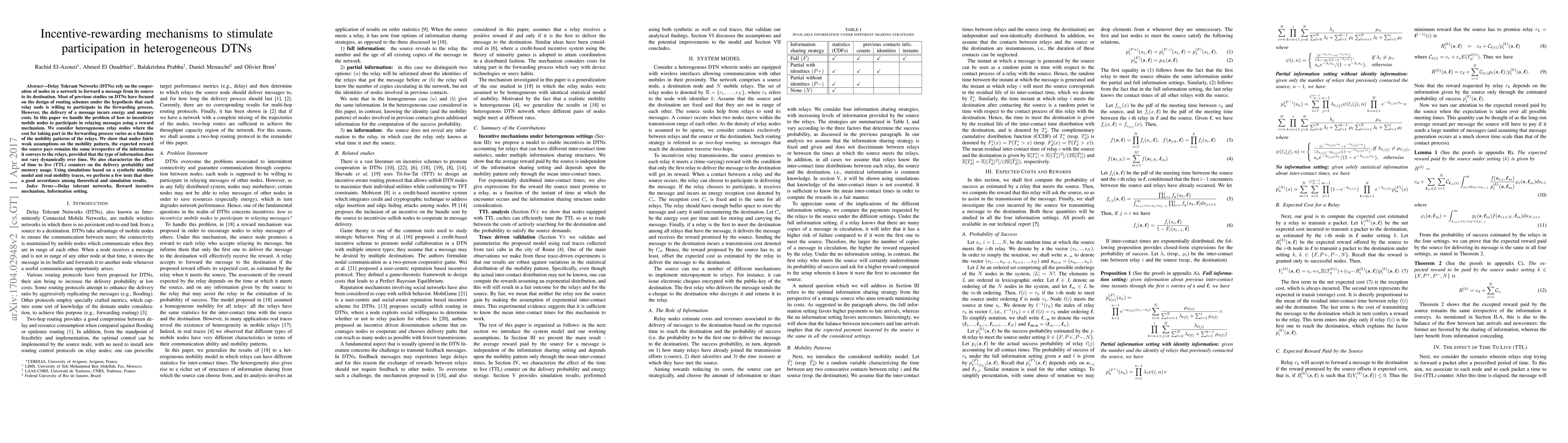 Delay Tolerant Networks (DTNs) rely on the cooperation of nodes in a network to forward a message from its source to its destination. Most of previous studies on DTNs have focused on the design of routing schemes under the hypothesis that each relay node is willing to participate in the forwarding process. However, the delivery of a message incurs energy and memory costs. In this paper we handle the problem of how to incentivize mobile nodes to participate in relaying messages using a reward mechanism. We consider heterogeneous relay nodes where the cost for taking part in the forwarding process varies as a function of the mobility patterns of the relays. We show that under fairly weak assumptions on the mobility pattern, the expected reward the source pays remains the same irrespective of the information it conveys to the relays, provided that the type of information does not vary dynamically over time. We also characterize the effect of time to live (TTL) counters on the delivery probability and memory usage. Using simulations based on a synthetic mobility model and real mobility traces, we perform a few tests that show a good accordance among theoretical and simulation results.