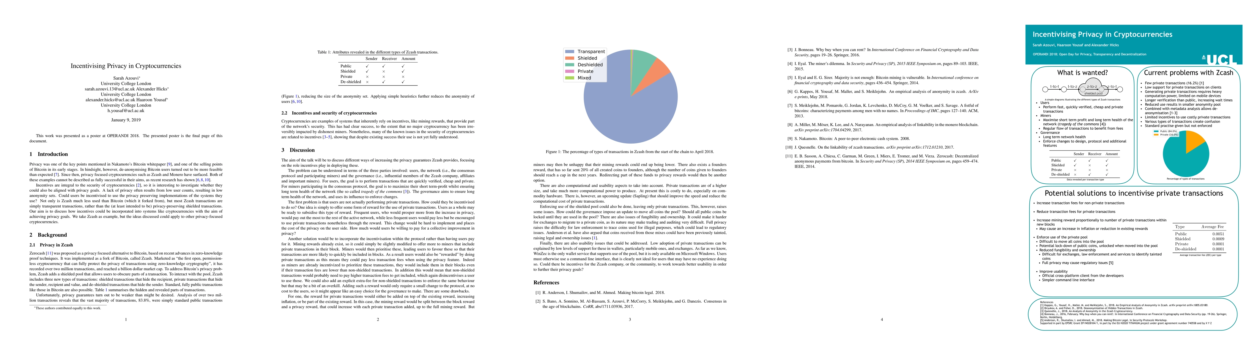 This paper explores the potential of incentivizing privacy in cryptocurrencies, focusing on Zcash as a case study. It highlights the challenges faced by privacy-focused cryptocurrencies and suggests that aligning incentives with privacy goals could help increase user engagement and improve anonymity.