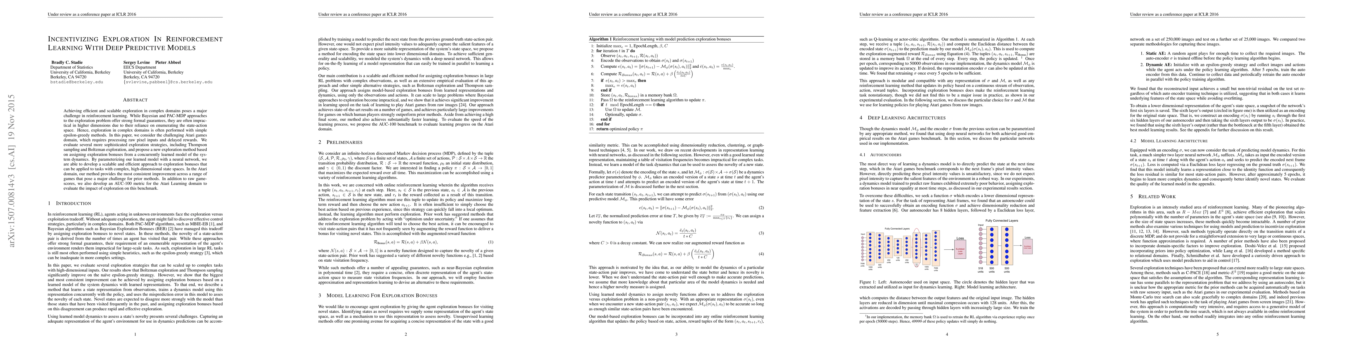 Researchers developed a new exploration method for reinforcement learning that uses a learned model of system dynamics to assign exploration bonuses, outperforming existing methods in the challenging Atari games domain.