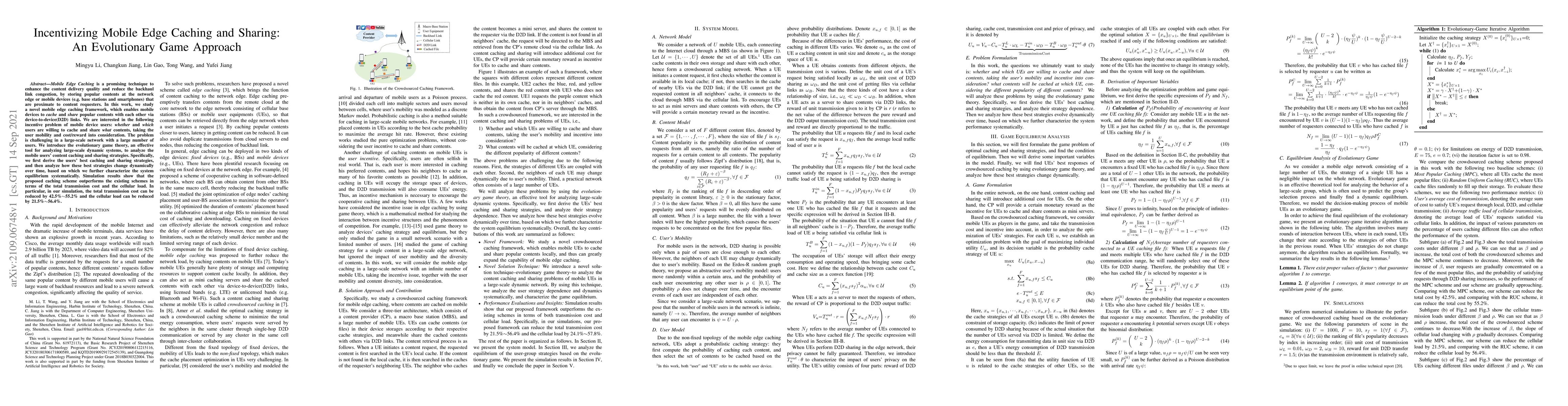 This paper proposes an evolutionary game approach to incentivize mobile edge caching and sharing among users, focusing on content delivery efficiency and reduced congestion. It analyzes users' caching and sharing strategies considering mobility and cost/reward, demonstrating significant reductions in transmission costs and cellular load through simulations.
