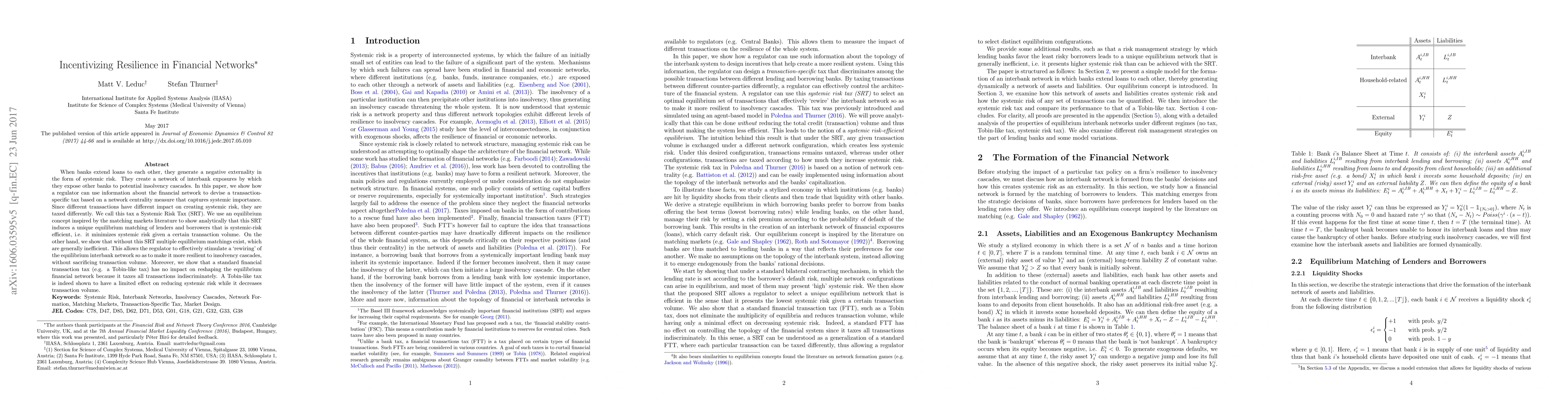 A regulator can use a transaction-specific tax based on network centrality to incentivize resilience in financial networks, reducing systemic risk while maintaining transaction volume. This approach is more effective than traditional taxes like the Tobin-like tax.