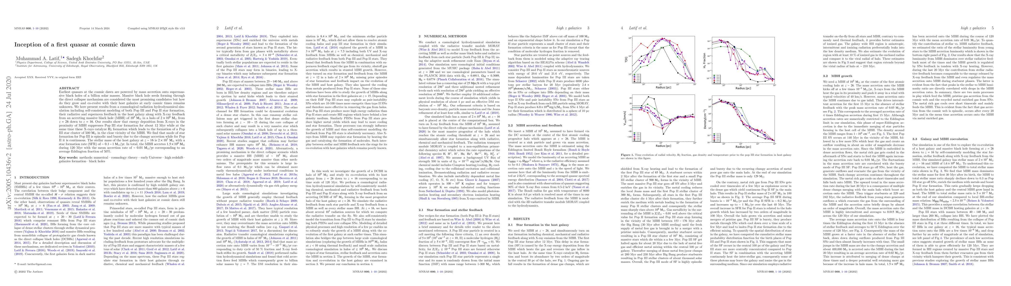 This research uses cosmological radiation hydrodynamical simulations to study the growth of a billion solar mass supermassive black hole (MBH) and its host galaxy during the cosmic dawn. The MBH, situated in a $2 imes 10^9 M_{odot}$ halo, suppresses Pop III star formation via X-ray emission for approximately 12 million years while promoting $ m H_2$ formation. This results in the creation of a 500 $M_{odot}$ Pop III star cluster near the MBH. The study reveals episodic Pop III and continuous Pop II star formation. By $z sim 16$, the galaxy has a stellar mass of $2 imes 10^7 M_{odot}$ and a star formation rate of $sim 0.1-1 M_{odot}/yr$. The MBH accretes $1.5 imes 10^6 M_{odot}$ over 120 Myr with an average accretion rate of $sim 0.01 M_{odot}/yr$, indicating an Eddington fraction of 50%.