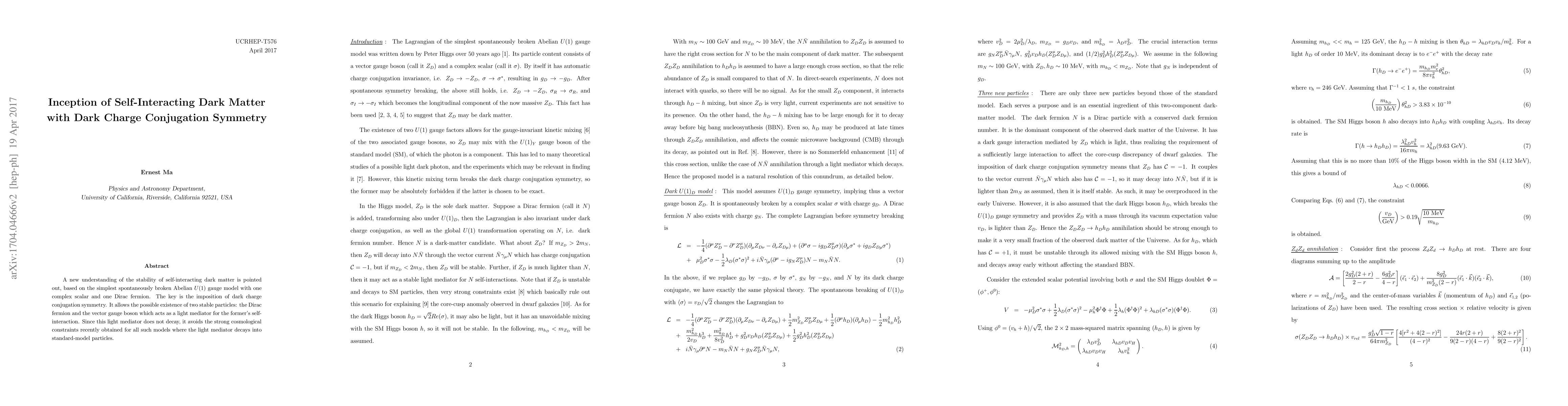 A new understanding of the stability of self-interacting dark matter is pointed out, based on the simplest spontaneously broken Abelian $U(1)$ gauge model with one complex scalar and one Dirac fermion. The key is the imposition of dark charge conjugation symmetry. It allows the possible existence of two stable particles: the Dirac fermion and the vector gauge boson which acts as a light mediator for the former's self-interaction. Since this light mediator does not decay, it avoids the strong cosmological constraints recently obtained for all such models where the light mediator decays into standard-model particles.