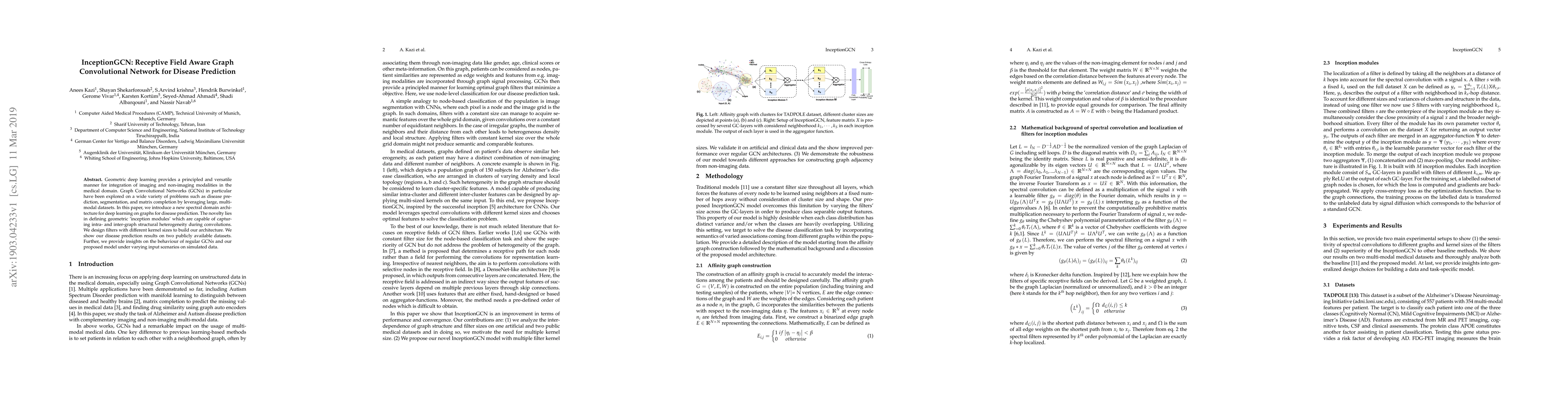 InceptionGCN introduces a novel spectral domain architecture for disease prediction using GCNs, featuring inception modules to capture structural heterogeneity. The model demonstrates improved performance on two datasets and provides insights into its behavior under different input conditions.