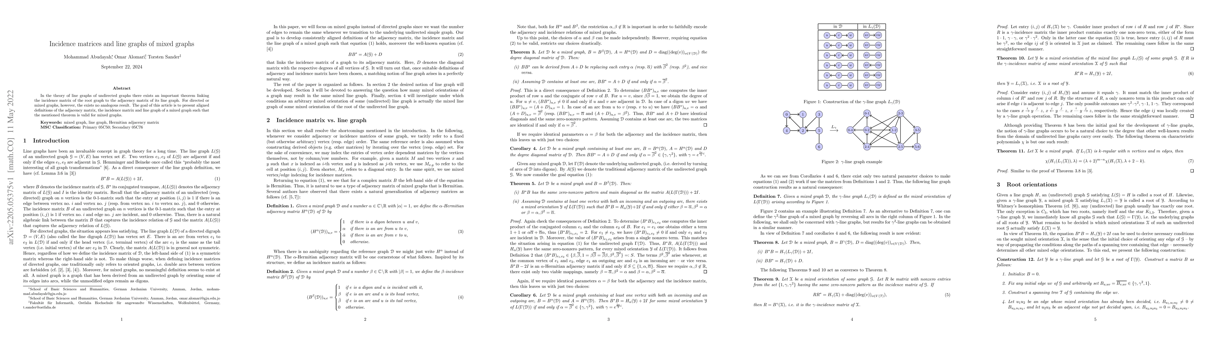 Researchers developed definitions for adjacency matrices, incidence matrices, and line graphs in mixed graphs, aiming to establish a theorem analogous to the existing one for undirected graphs, enabling studies of directed graph structures.
