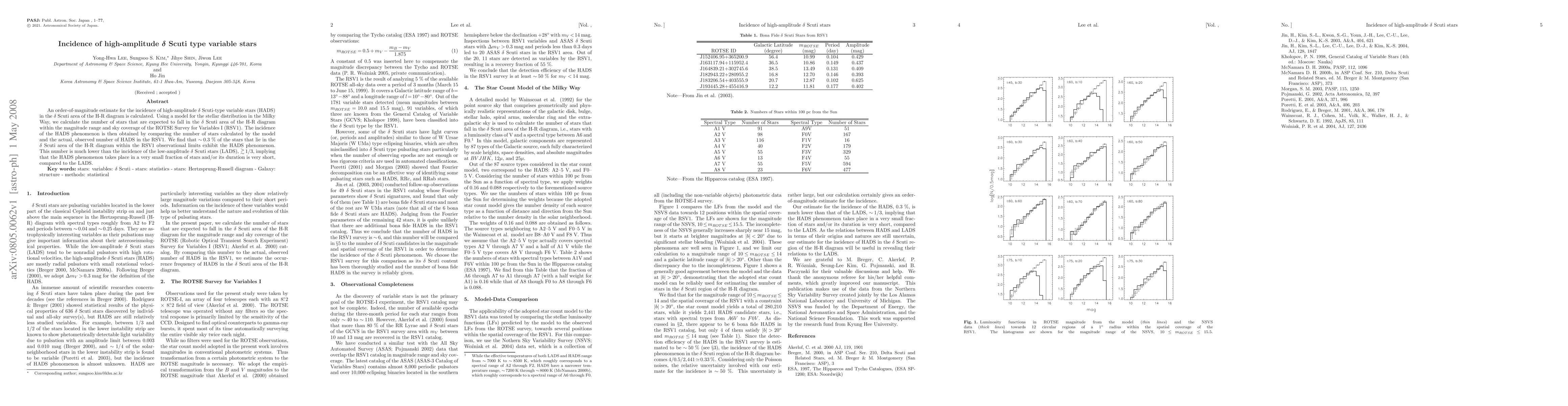 An order-of-magnitude estimate for the incidence of high-amplitude delta Scuti-type variable stars (HADS) in the delta Scuti area of the H-R diagram is calculated. Using a model for the stellar distribution in the Milky Way, we calculate the number of stars that are expected to fall in the delta Scuti area of the H-R diagram within the magnitude range and sky coverage of the ROTSE Survey for Variables I (RSV1). The incidence of the HADS phenomenon is then obtained by comparing the number of stars calculated by the model and the actual, observed number of HADS in the RSV1. We find that ~0.3 % of the stars that lie in the delta Scuti area of the H-R diagram within the RSV1 observational limits exhibit the HADS phenomenon. This number is much lower than the incidence of the low-amplitude delta Scuti stars (LADS), ~>1/3, implying that the HADS phenomenon takes place in a very small fraction of stars and/or its duration is very short, compared to the LADS.