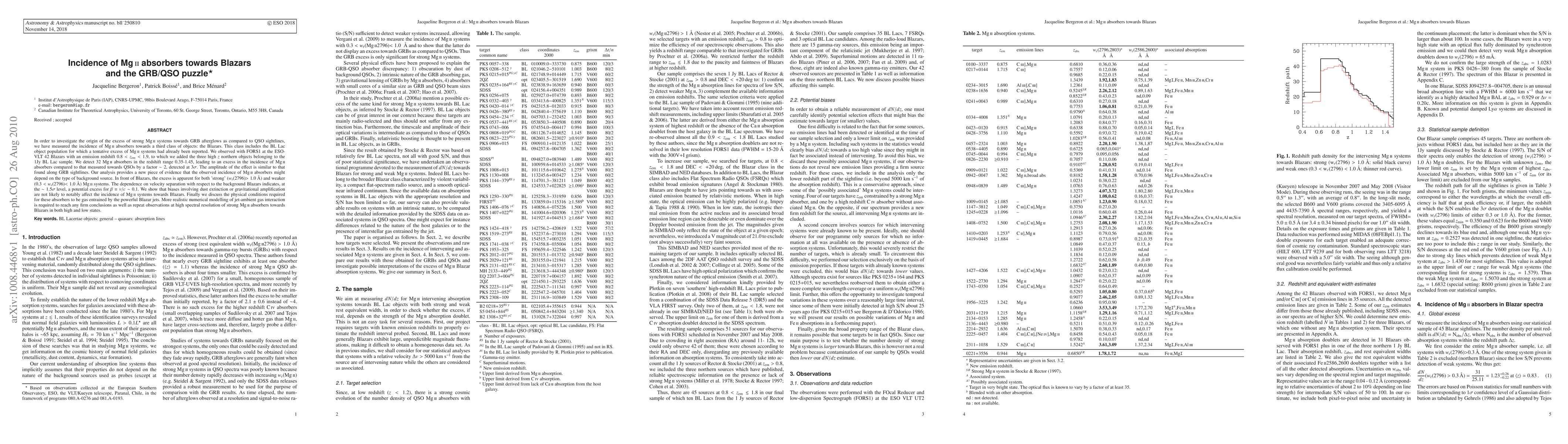 incidence of MgII absorbers towards a third class of objects: the Blazars. This