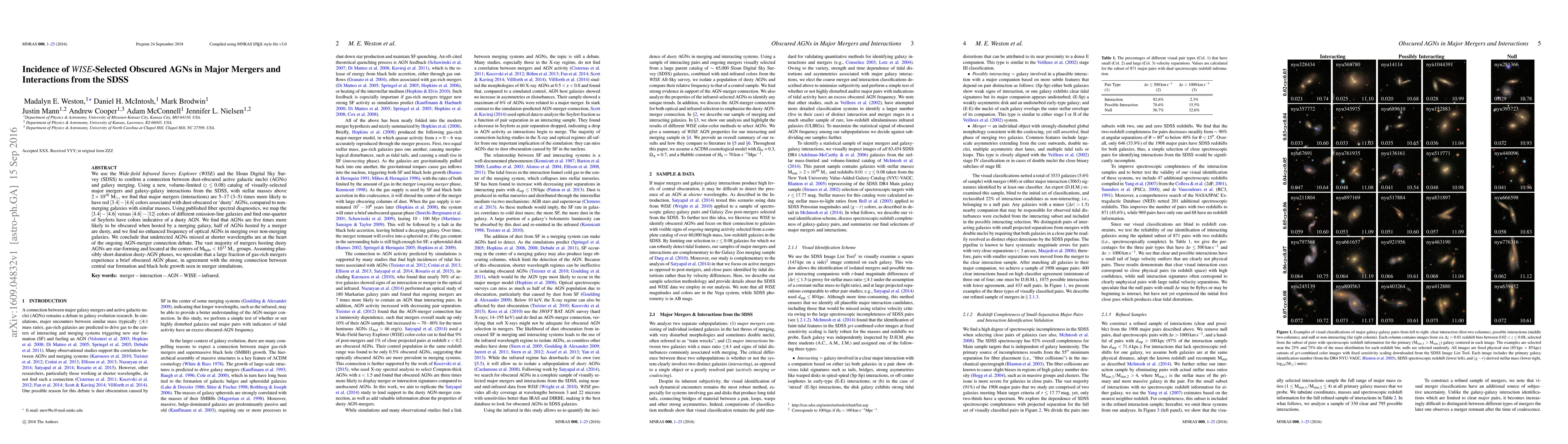 This study uses WISE and SDSS data to show that major galaxy mergers are significantly more likely to host dust-obscured active galactic nuclei (AGNs) compared to non-merging galaxies. The research finds that merging galaxies are 5-17 times more likely to have AGNs with red [3.4]-[4.6] colors indicative of dust obscuration, suggesting that many obscured AGNs are missed in optical surveys.