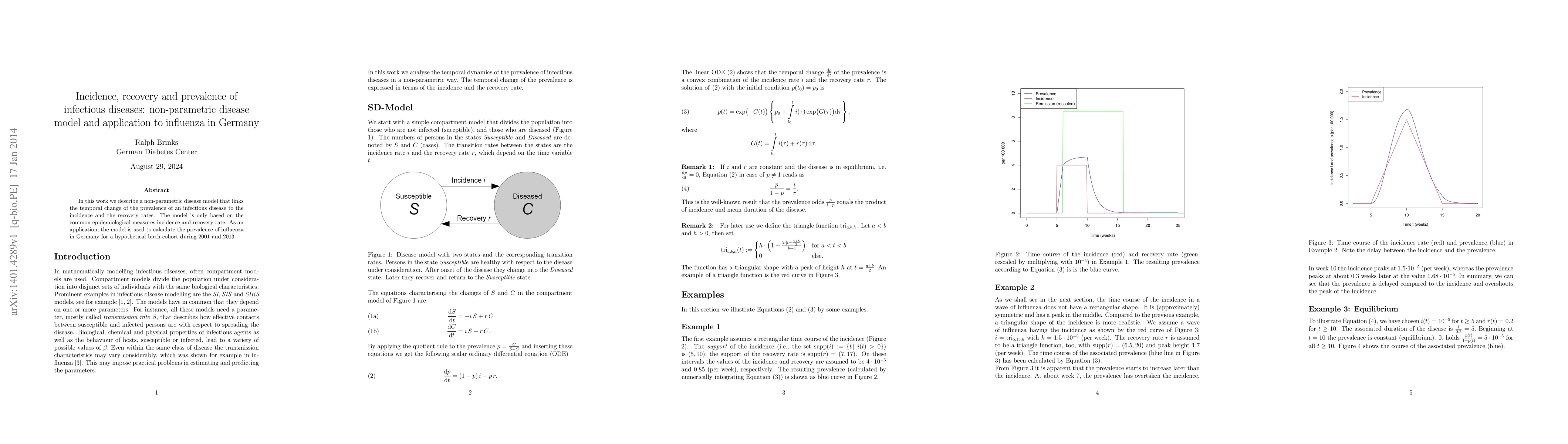 This paper presents a non-parametric disease model correlating the temporal prevalence of infectious diseases with incidence and recovery rates, using only epidemiological measures. It applies the model to estimate influenza prevalence in Germany for a birth cohort from 2001 to 2013.