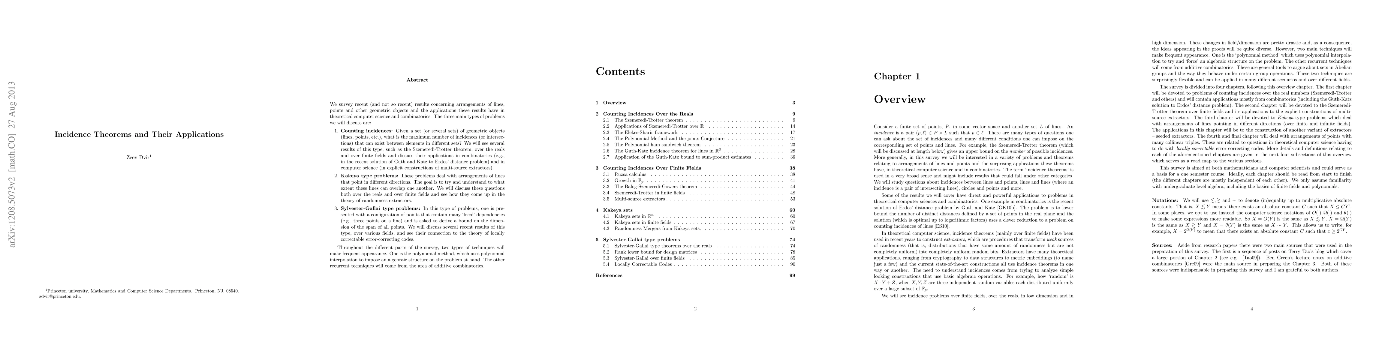 We survey recent (and not so recent) results concerning arrangements of lines, points and other geometric objects and the applications these results have in theoretical computer science and combinatorics. The three main types of problems we will discuss are: (1) Counting incidences: Given a set (or several sets) of geometric objects (lines, points, etc..), what is the maximum number of incidences (or intersections) that can exist between elements in different sets? We will see several results of this type, such as the Szemeredi-Trotter theorem, over the reals and over finite fields and discuss their applications in combinatorics (e.g., in the recent solution of Guth and Katz to Erdos' distance problem) and in computer science (in explicit constructions of multi-source extractors). (2) Kakeya type problems: These problems deal with arrangements of lines that point in different directions. The goal is to try and understand to what extent these lines can overlap one another. We will discuss these questions both over the reals and over finite fields and see how they come up in the theory of randomness-extractors. (3) Sylvester-Gallai type problems: In this type of problems, one is presented with a configuration of points that contain many `local' dependencies (e.g., three points on a line) and is asked to derive a bound on the dimension of the span of all points. We will discuss several recent results of this type, over various fields, and see their connection to the theory of locally correctable error-correcting codes. Throughout the different parts of the survey, two types of techniques will make frequent appearance. One is the polynomial method, which uses polynomial interpolation to impose an algebraic structure on the problem at hand. The other recurrent techniques will come from the area of additive combinatorics.