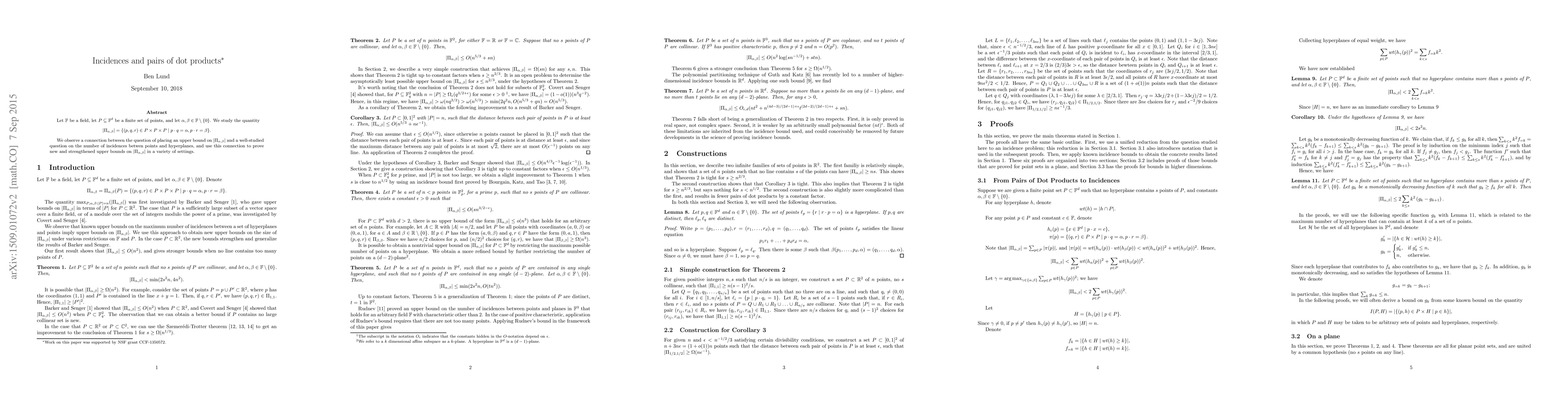 Let $\mathbb{F}$ be a field, let $P \subseteq \mathbb{F}^d$ be a finite set of points, and let $\alpha,\beta \in \mathbb{F} \setminus \{0\}$. We study the quantity \[|\Pi_{\alpha, \beta}| = \{(p,q,r) \in P \times P \times P \mid p \cdot q = \alpha, p \cdot r = \beta \}.\] We observe a connection between the question of placing an upper bound on $|\Pi_{\alpha,\beta}|$ and a well-studied question on the number of incidences betwen points and hyperplanes, and use this connection to prove new and strengthened upper bounds on $|\Pi_{\alpha,\beta}|$ in a variety of settings.