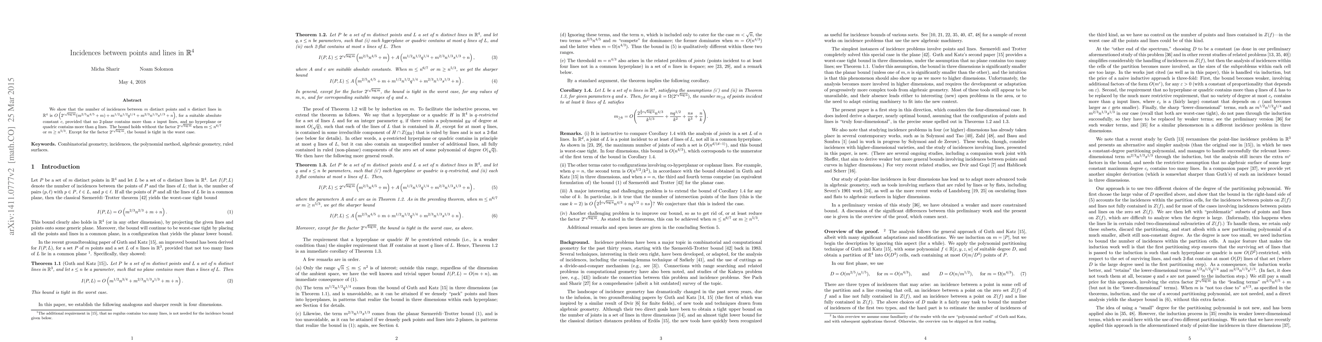 This paper establishes an upper bound on the number of incidences between $m$ points and $n$ lines in ${\mathbb R}^4$, showing that it is $O\left(2^{c\sqrt{\log m}}(m^{2/5}n^{4/5}+m) + m^{1/2}n^{1/2}q^{1/4} + m^{2/3}n^{1/3}s^{1/3} + n\right)$, with specific conditions on the distribution of lines. The bound is tight except for an additional factor when $m$ is not between $n^{6/7}$ and $n^{5/3}$.
