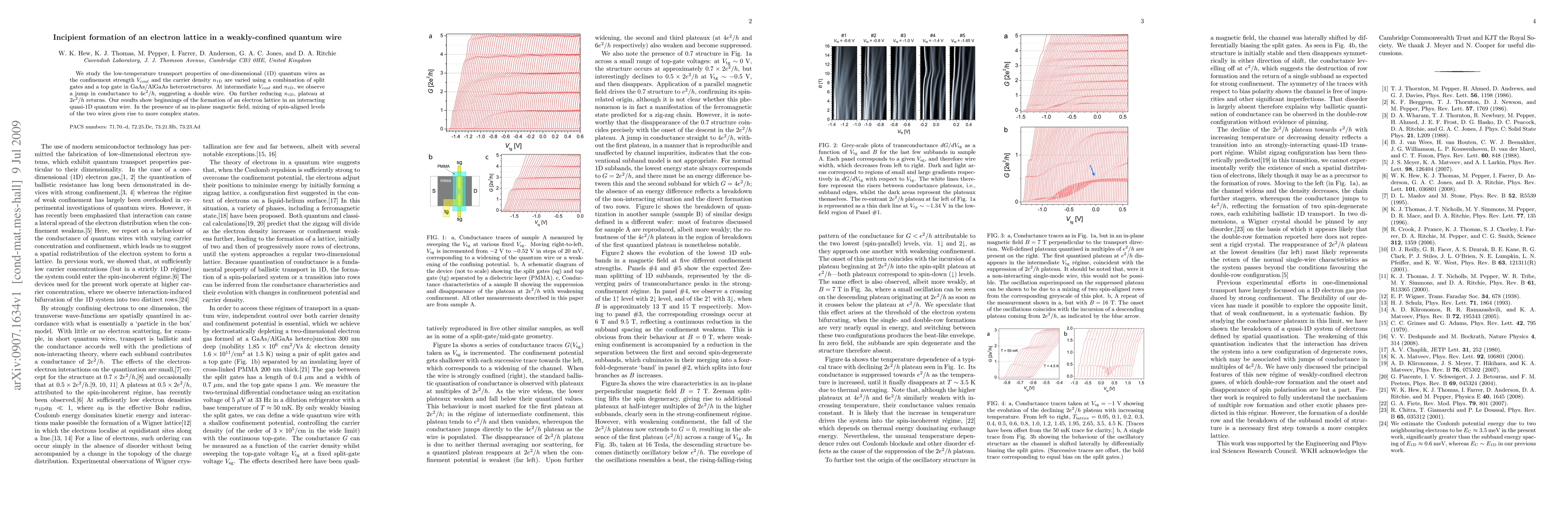 We study the low-temperature transport properties of 1D quantum wires as the confinement strength V_conf and the carrier density n_1D are varied using a combination of split gates and a top gate in GaAs/AlGaAs heterostructures. At intermediate V_conf and n_1D, we observe a jump in conductance to 4e^2/h, suggesting a double wire. On further reducing n_1D, plateau at 2e^2/h returns. Our results show beginnings of the formation of an electron lattice in an interacting quasi-1D quantum wire. In the presence of an in-plane magnetic field, mixing of spin-aligned levels of the two wires gives rise to more complex states.